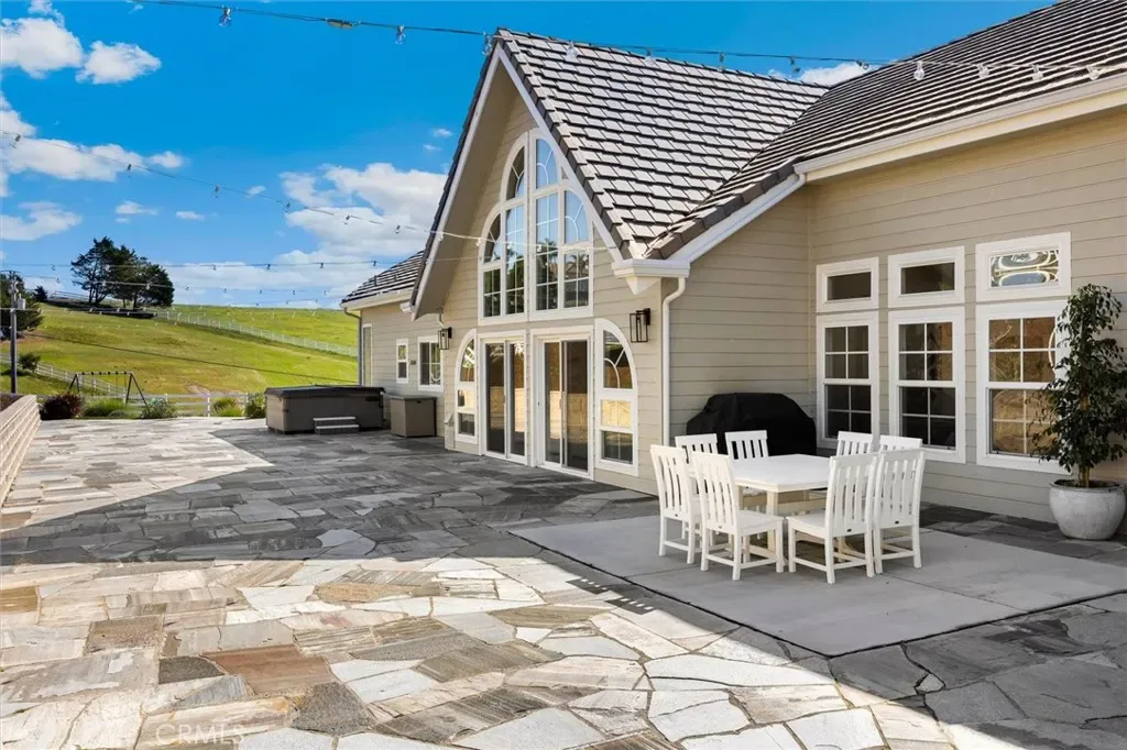 Nestled within the gated community of Falcon Ridge Estates in Arroyo Grande, 172 Falcon Crest Drive is perched atop a recently landscaped 2.65 acre lot and overlooks a lush valley and glimmers of the Pacific Ocean in the distance.