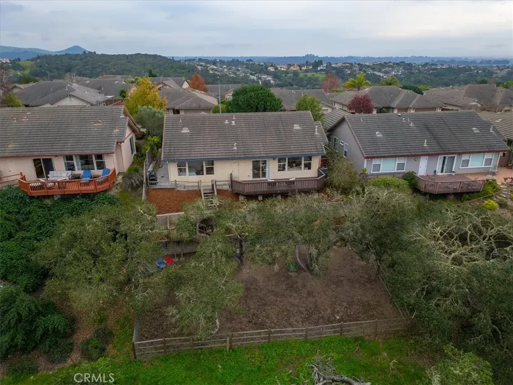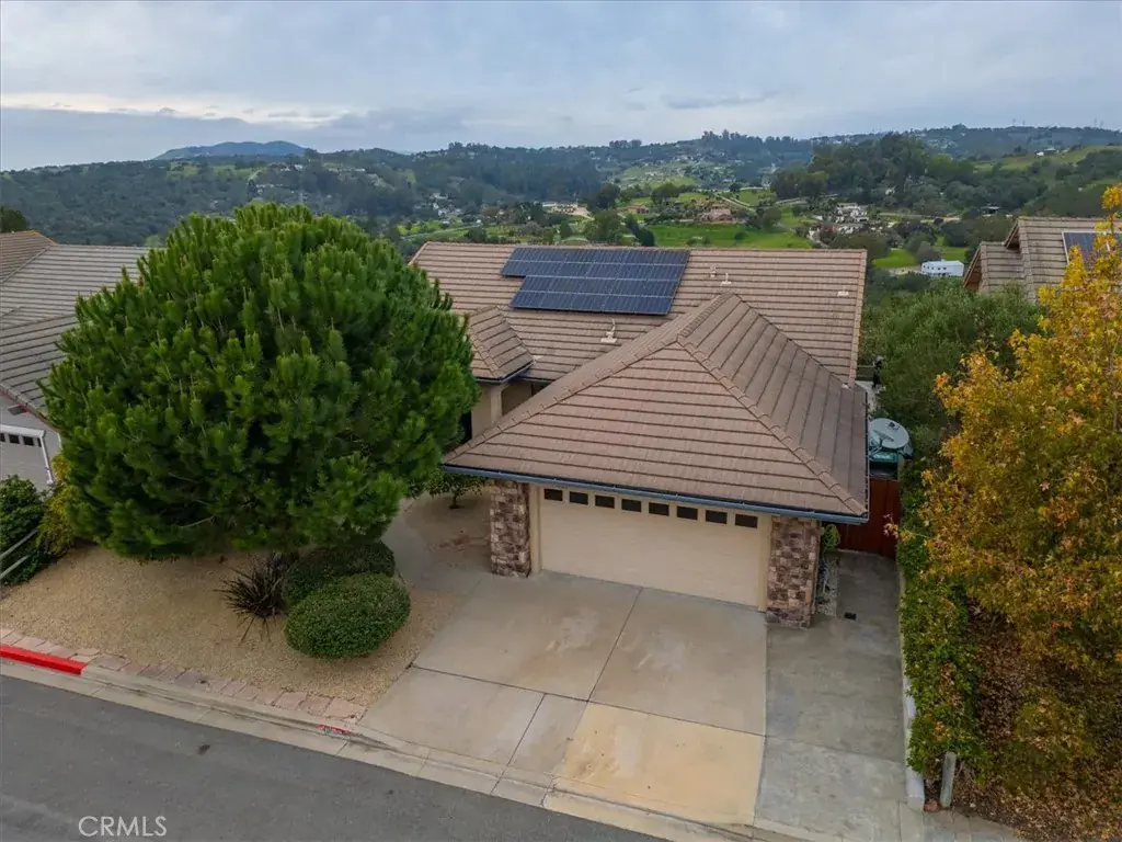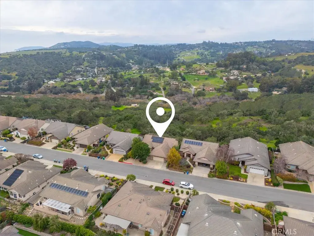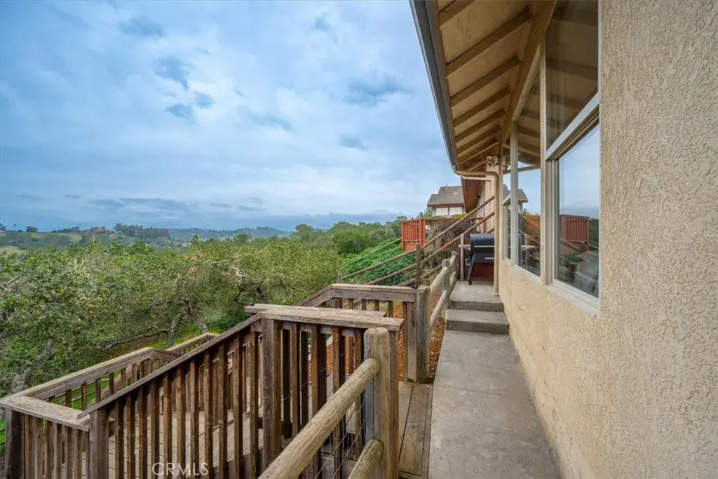 Perched in the highly desirable Highlands neighborhood of East Arroyo Grande, this beautifully updated 3 bedroom, 2 bathroom home offers breathtaking ocean, rolling hills, and canyon views on a generous 7200 square foot lot, backing to open space with no neighbors behind you. With 1,860 quare feet of thoughtfully designed living space, this home is filled with natural light throughout every room and offers a peaceful, private setting. Inside, the home has been freshly painted and features tile flooring throughout, creating a cohesive and low maintenance living environment. The living area is anchored by an updated fireplace with a modern mantle, while large windows frame the surrounding landscape and bring the outdoors in. The primary suite includes a remodeled bathroom with granite countertops and updated finishes, providing a relaxing retreat. Step outside to a freshly painted back deck, perfectly positioned to take in the stunning views and Central Coast sunsets. Stairs lead down to a fenced open space with endless potential — whether you envision creating the backyard of your dreams, expanding outdoor living, or exploring the possibility of an ADU. Mature oak trees enhance privacy and natural beauty, and the open space behind the property creates a tranquil setting where wildlife such as deer, turkeys, and peacocks are frequently seen. Additional highlights include leased solar with a Tesla backup battery, air conditioning, stamped concrete side yard, front patio space, producing avocado, lemon, grapefruit and mandarin orange trees and low maintenance landscaping. Conveniently located close to shops, the Village of Arroyo Grande, Edna Valley wineries, Highway 101, and within the Ocean View School District, this home offers the perfect balance of privacy, views, and Central Coast lifestyle. A rare opportunity to own a light filled, private view property with space, upgrades, and future potential in one of Arroyo Grande’s most sought after neighborhoods.
