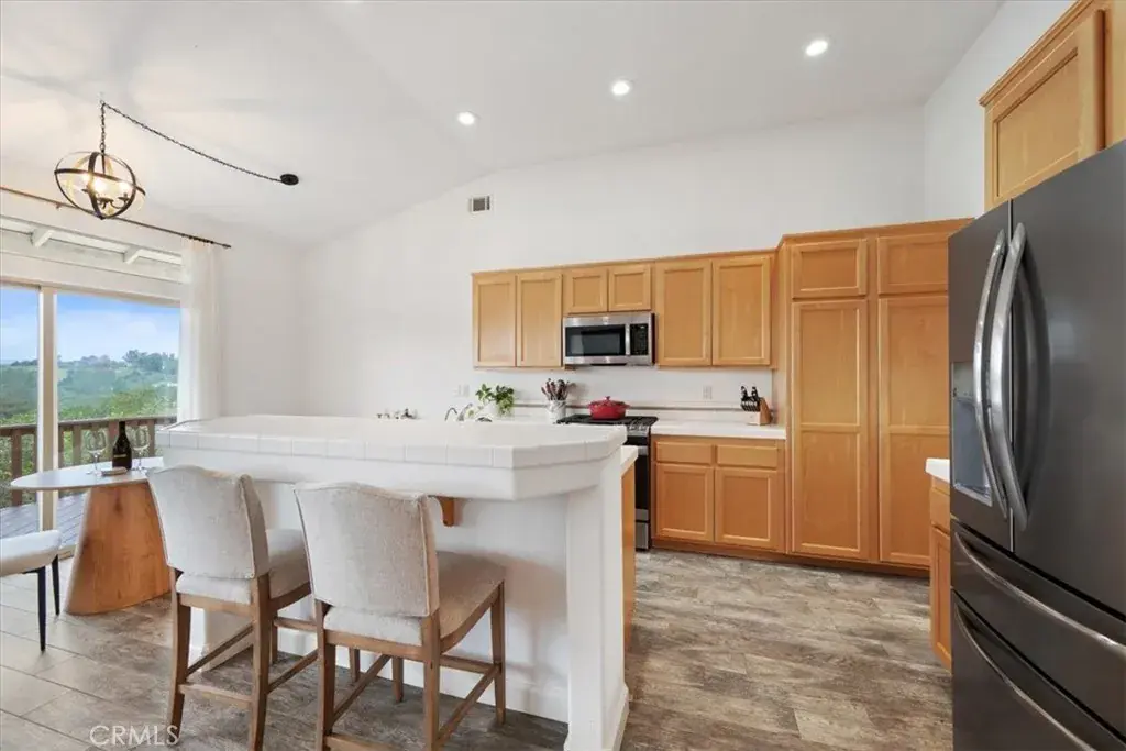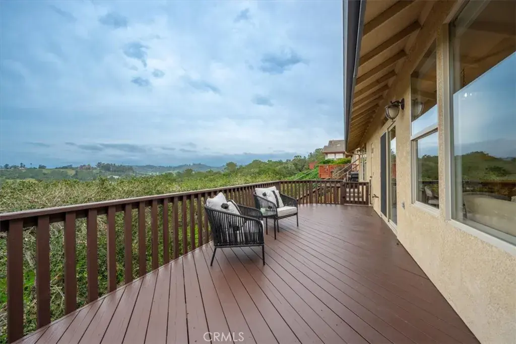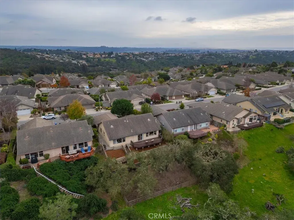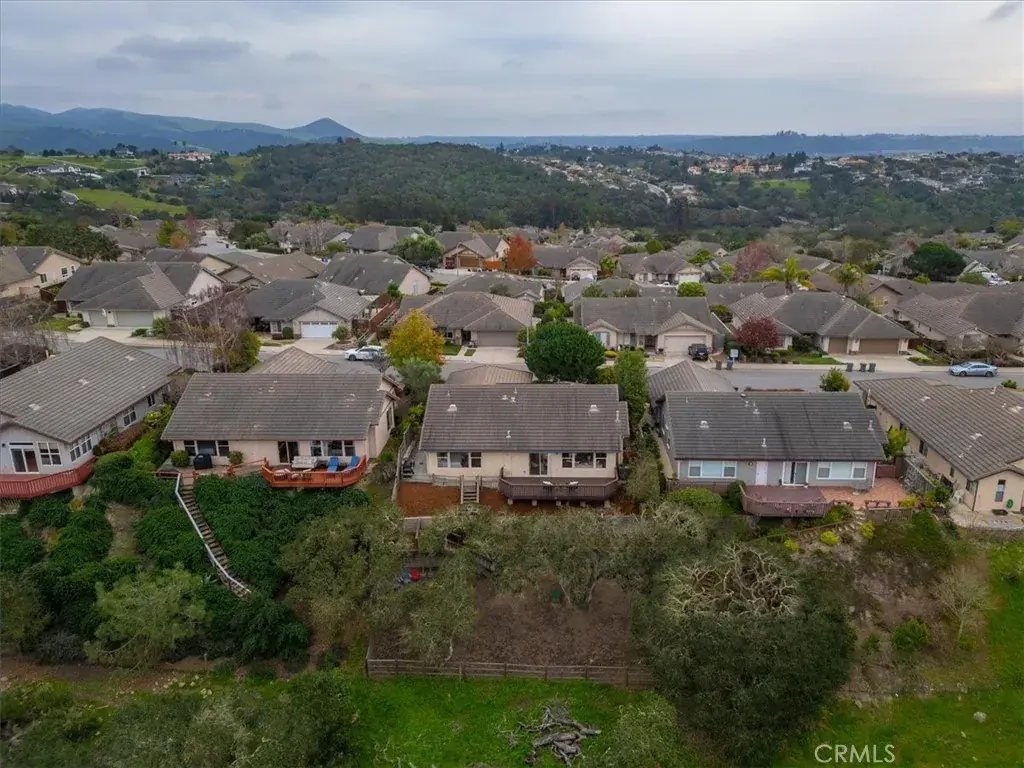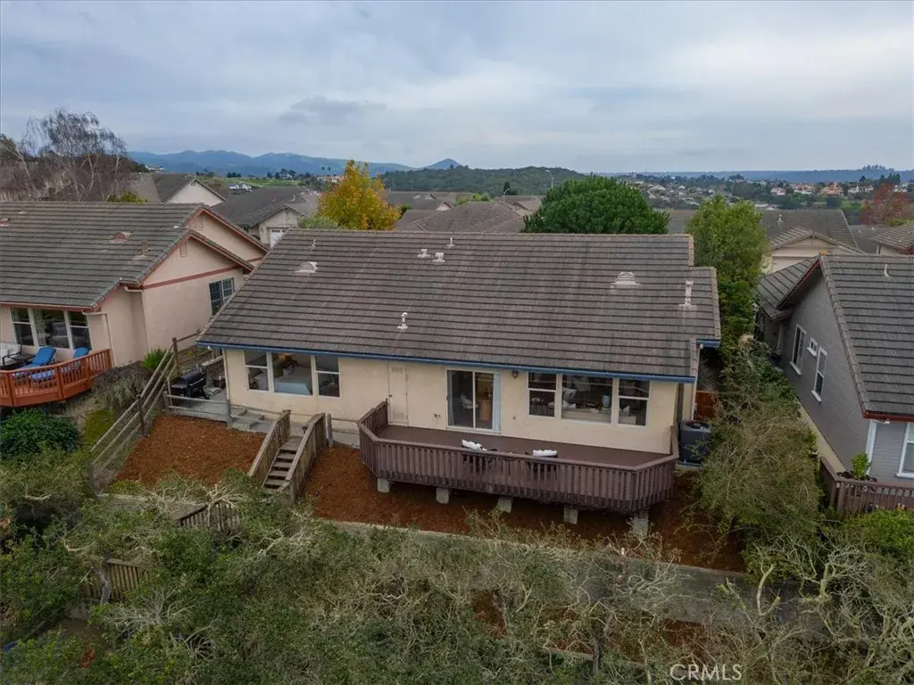Perched in the highly desirable Highlands neighborhood of East Arroyo Grande, this beautifully updated 3 bedroom, 2 bathroom home offers breathtaking ocean, rolling hills, and canyon views on a generous 7200 square foot lot, backing to open space with no neighbors behind you. With 1,860 quare feet of thoughtfully designed living space, this home is filled with natural light throughout every room and offers a peaceful, private setting. Inside, the home has been freshly painted and features tile flooring throughout, creating a cohesive and low maintenance living environment. The living area is anchored by an updated fireplace with a modern mantle, while large windows frame the surrounding landscape and bring the outdoors in. The primary suite includes a remodeled bathroom with granite countertops and updated finishes, providing a relaxing retreat. Step outside to a freshly painted back deck, perfectly positioned to take in the stunning views and Central Coast sunsets. Stairs lead down to a fenced open space with endless potential — whether you envision creating the backyard of your dreams, expanding outdoor living, or exploring the possibility of an ADU. Mature oak trees enhance privacy and natural beauty, and the open space behind the property creates a tranquil setting where wildlife such as deer, turkeys, and peacocks are frequently seen. Additional highlights include leased solar with a Tesla backup battery, air conditioning, stamped concrete side yard, front patio space, producing avocado, lemon, grapefruit and mandarin orange trees and low maintenance landscaping. Conveniently located close to shops, the Village of Arroyo Grande, Edna Valley wineries, Highway 101, and within the Ocean View School District, this home offers the perfect balance of privacy, views, and Central Coast lifestyle. A rare opportunity to own a light filled, private view property with space, upgrades, and future potential in one of Arroyo Grande’s most sought after neighborhoods.