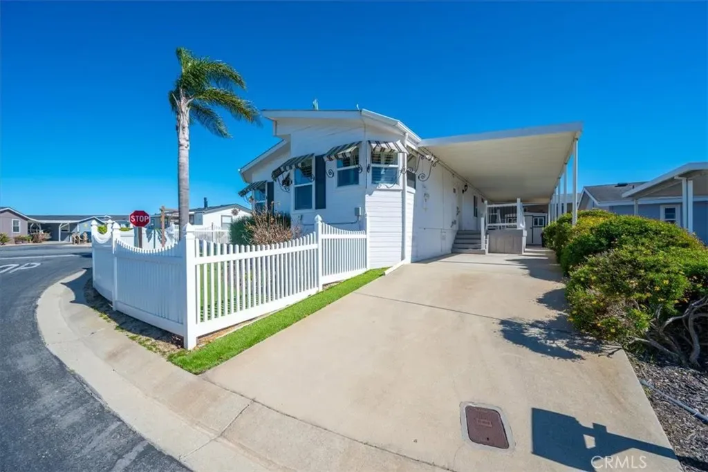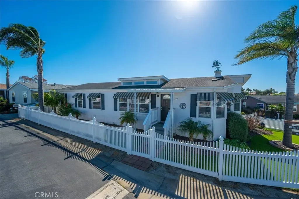 Everyday living feels relaxed and coastal in this bright, open corner-lot home in Mesa Dunes Estates, just minutes from the shoreline and Central Coast destinations. Inside, the spacious living room is the heart of the home, filled with natural light from large windows and enhanced by plantation shutters and luxury vinyl plank flooring. Its open layout creates a bright, inviting space for gatherings or quiet relaxation. The floor plan also includes a formal dining room and a sunny dining area just off the kitchen, ideal for casual meals or enjoying a morning view. The kitchen features abundant cabinetry, plenty of counter space, and a central island, making it perfect for cooking, entertaining, or everyday living. The primary bedroom is generously sized and includes an attached bathroom with dual sinks, providing a comfortable private retreat. Two additional bedrooms offer flexibility for guests, a home office, or creative projects. A dedicated laundry room with linen closet and extra storage adds convenience, while a separate exterior storage unit provides room for tools, seasonal items, or recreational gear. Covered parking under the carport completes the home. The exterior offers strong curb appeal with a fenced yard. A private side deck provides a peaceful spot to enjoy peek-a-boo ocean views and refreshing coastal breezes, making it ideal for morning coffee or evening relaxation. Mesa Dunes Estates is a welcoming, all-ages community featuring two swimming pools, a clubhouse, a fitness center, playground, and scenic walking paths. Open spaces and well-maintained grounds create a friendly and inviting neighborhood atmosphere. Conveniently located near Pismo Beach, Arroyo Grande, and the Village of Arroyo Grande, the home is close to beaches, dining, shopping, and local amenities — offering the perfect combination of comfort, convenience, and coastal lifestyle.
