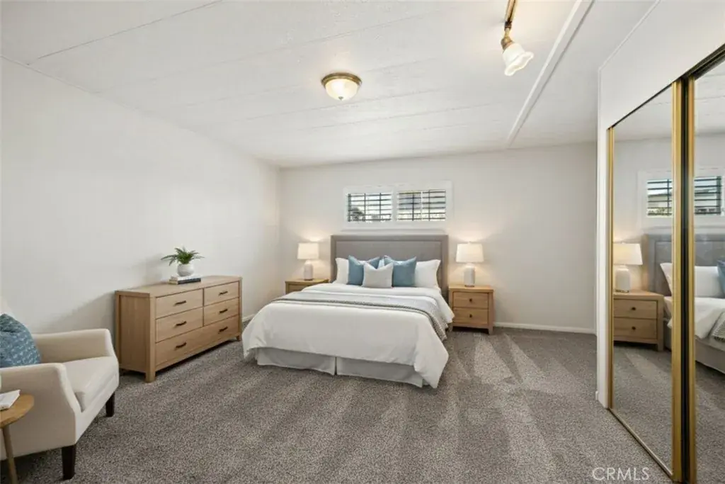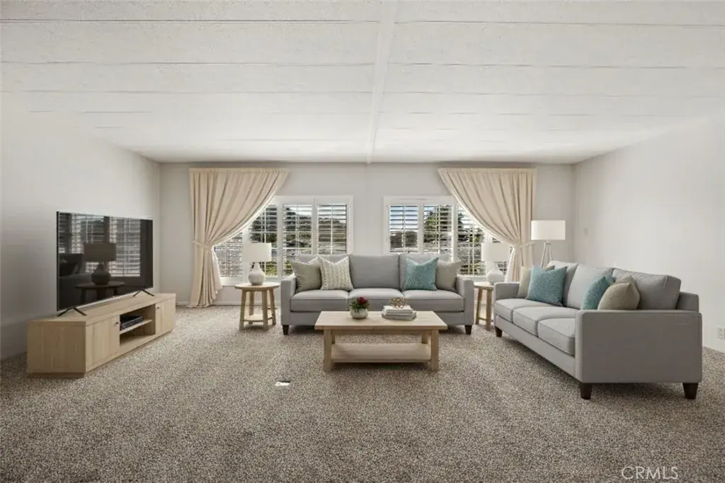 An exceptional opportunity awaits with this spacious 2-bedroom, 2-bathroom manufactured home with a huge bonus room, ideally located in a sought-after Arroyo Grande community. Situated on an approximate 1,736 sq ft lot, this property delivers generous living space and a prime chance for personalization. The bright interior features an open floor plan with expansive living areas, including a sizable living room and a separate family room. Both spaces are finished with neutral paint, plush carpeting, and are illuminated by large windows fitted with classic shutters, ensuring a cheerful and inviting atmosphere. The well-appointed kitchen is defined by classic wood cabinetry offering significant storage, and it flows seamlessly into the dedicated dining area, which boasts an attractive built-in hutch with glass display frontsperfect for entertaining. The two bedrooms are roomy and comfortable. The primary suite features elegant gold-framed mirrored closet doors and a private en-suite bathroom with a classic enclosed shower. The second full bathroom is equally functional, offering extended vanity space and cabinet storage. The bonus room could be used as a bedroom since it has an oversized closet. The homes exterior is complemented by beautiful landscaping, a paver-stone walkway, and steps leading up to a covered, sheltered porch ideal for enjoying the mild climate. Convenient covered carport parking is also included. Combining location, size, and potential – this home is ready for its next chapter … as your new home!