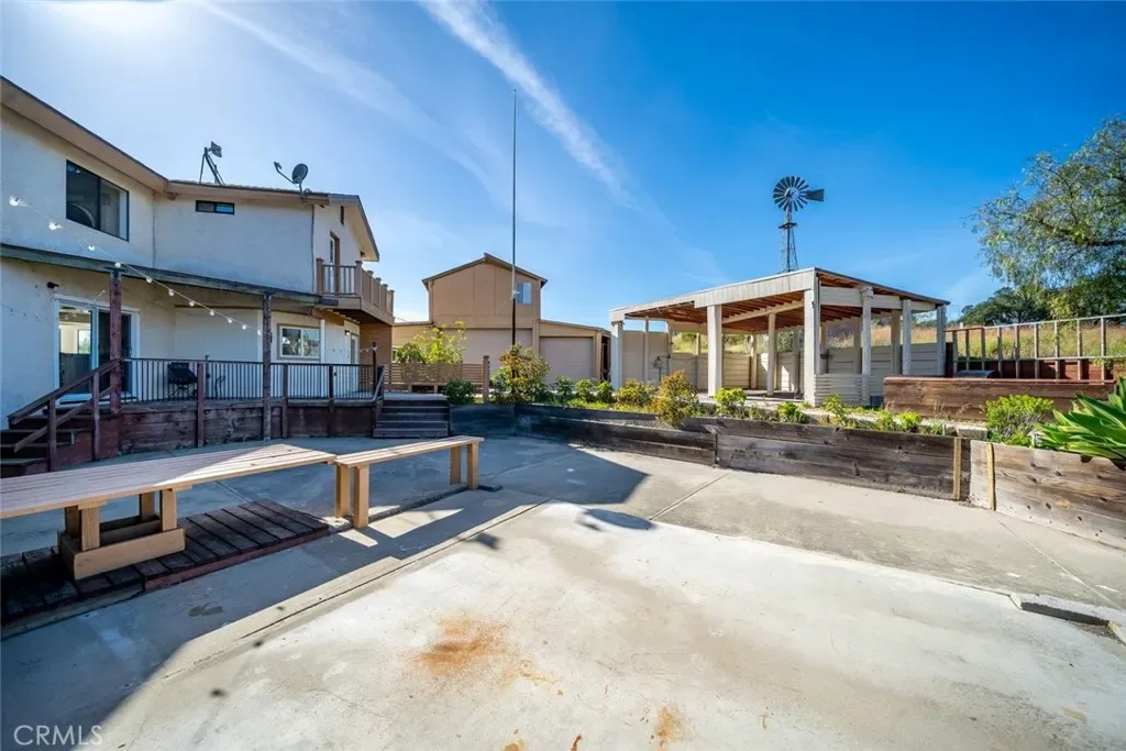 Additional features include a pole barn, saloon building, detached three-car garage with mechanic pit, a private well with 500-gallon galvanized steel holding tank, a windmill, and panoramic views. Plus a bonus room above the garage.