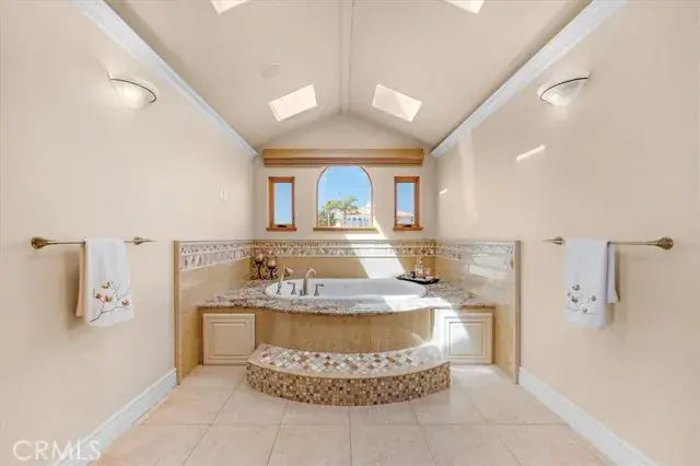 The gourmet kitchen is equipped with Viking appliances, a Wolf espresso maker, and a Sub-Zero wine cooler, centered around an elegant island and wet bar. On the lower level, a large temperature-controlled wine cellar provides excellent storage for collectors. A private elevator connects all levels of the home, while radiant heating ensures year-round comfort.