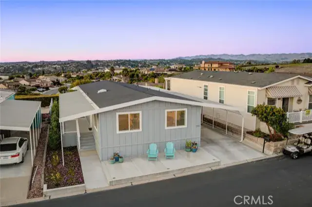 Welcome to 252 Longden, a spacious and inviting 2 bedroom, 2bath double-wide manufactured home offering 1,440 square feet of comfortable living in the highly sought-after Sunrise Terrace 55+ community. This beautifully remodeled residence features modern updates throughout, and the exterior of the home is surrounded by a spacious wrap-around deck ideal for enjoying the spectacular views of the coast and sunsets creating the perfect setting for entertaining or relaxed everyday living. Inside, a large living room flows seamlessly into an open kitchen with breakfast bar and stainless-steel appliances, plus an additional living area with access to the deck. The primary suite includes sliding door access to the expansive deck, walk-in closet and an ensuite bathroom featuring a walk-in shower. Additional highlights include ample storage space at the rear of the unit and generous parking beneath a deep covered carport that extends the full length of the home. The Sunrise Terrace Community offers resort-style living with amenities that are truly unparalleled. Residents enjoy a beautifully appointed clubhouse, a large heated pool and spa, and a fully equipped exercise center. Outdoor recreation abounds with pickleball, tennis, golf, and bocci ball courts, as well as a pavilion area perfect for barbecues and gatherings. The community also features a social hall with a kitchen, card room, library, and billiards room, ensuring endless opportunities for social connection and leisure. Additional conveniences include RV parking, community garden space, and a fenced dog park for your furry companions. This is a membership park, and the membership fee, granting access to all these exceptional amenities, is included in the price of the home. Experience the best of Central Coast living at 252 Longden, where comfort, community, and convenience come together beautifully.