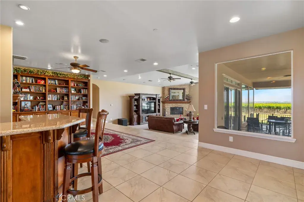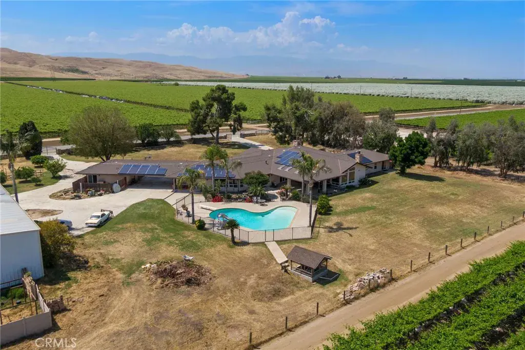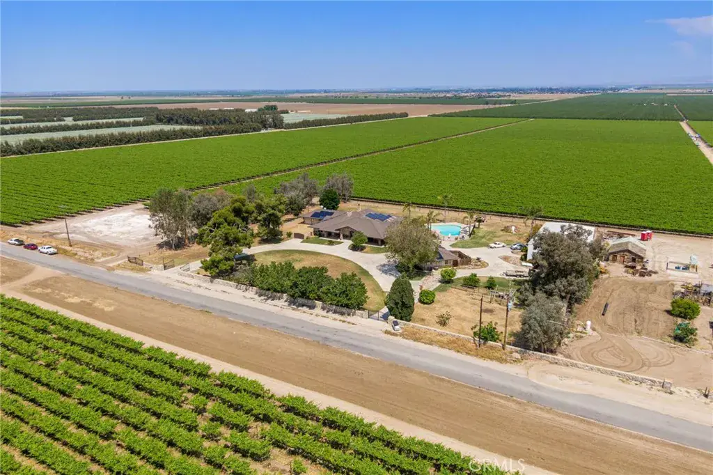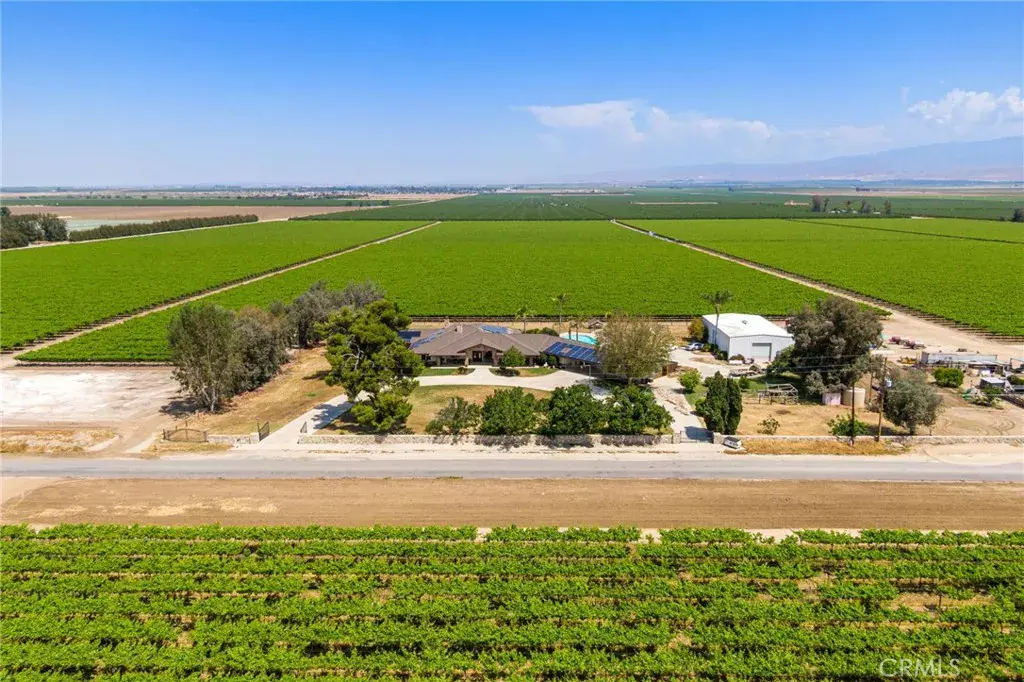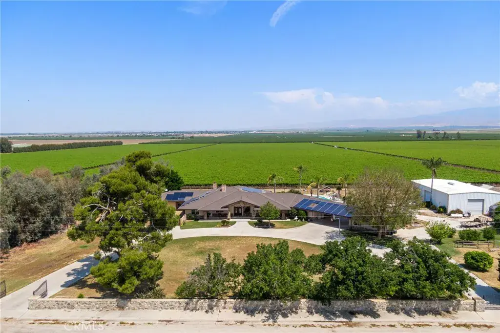 This ranch-style home sits on 2.27 acres at the foot of the Tehachapi Mountains. Nestled amongst grape vineyards with spectacular views of the mountains, the valley and the city lights of Arvin. The open concept living room, dining room, library and wet bar provide ample area for entertaining. The chef’s kitchen features granite countertops, center island, Electrolux gas stovetop, double ovens, built-in Kenmore Elite refrigerator/freezer and walk-in pantry. There is also a bonus/exercise room. The main house is 4,977 sf and has 3 en-suite bedrooms with walk-in closets, and 5.5 bathrooms. The primary en-suite also has a fireplace, dressing area and an office. Additional fireplaces in the living room, library, dining room, and bonus room. A covered porch spans the front of the house. Out back is a covered patio and pool. The ADU, connected by the carport, is 577 sf and has one bedroom, one bath, living room and kitchenette. There is a 3,000 square foot shop building with roll-up doors.