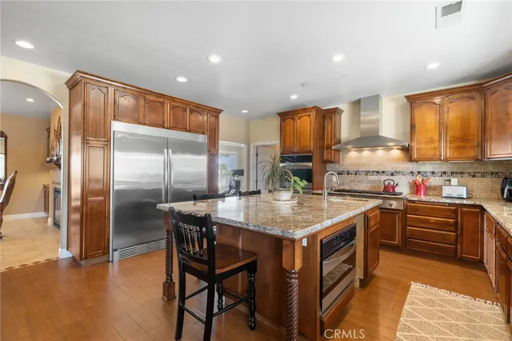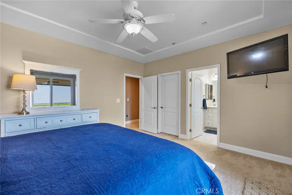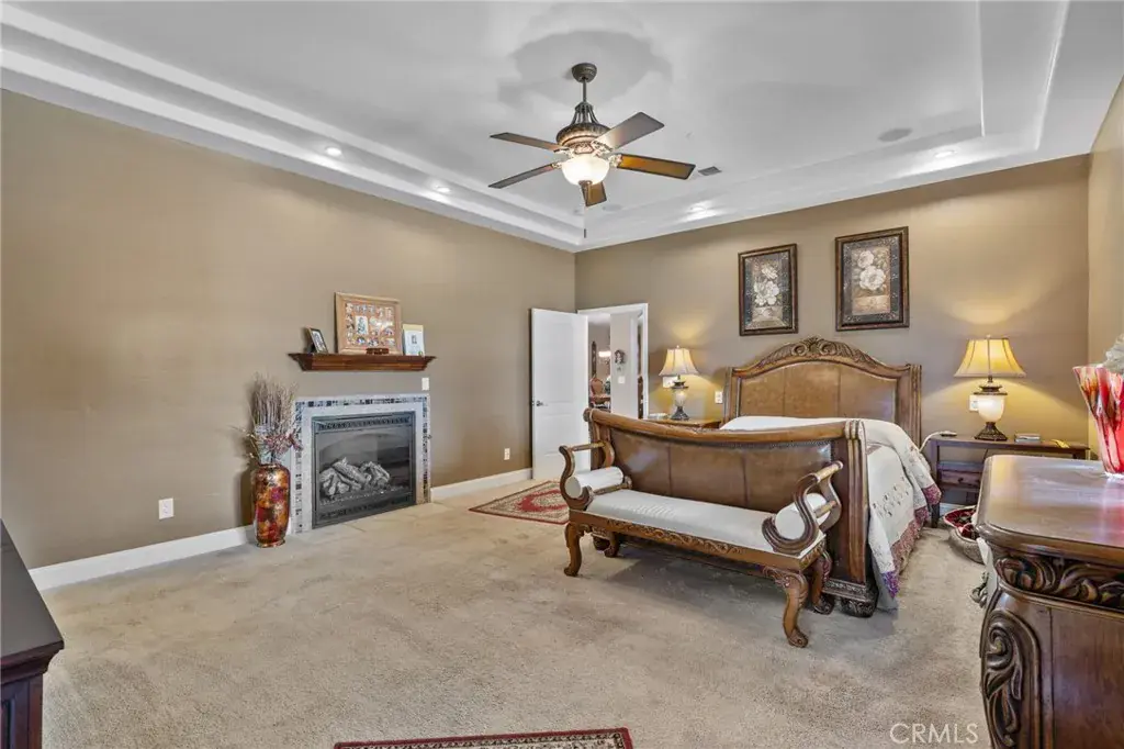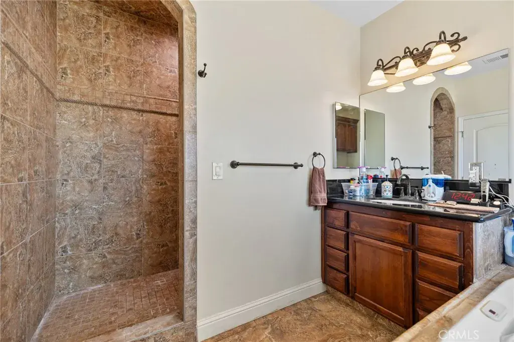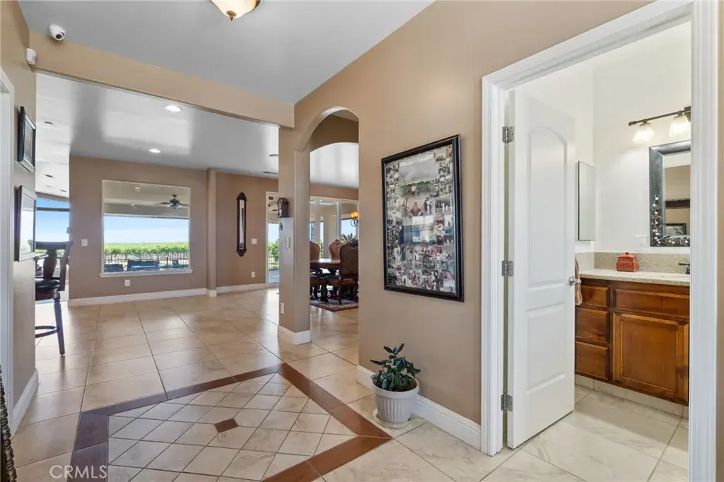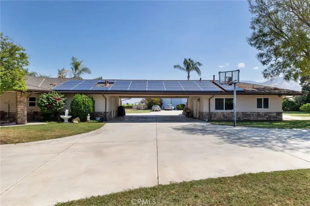 This ranch-style home sits on 2.27 acres at the foot of the Tehachapi Mountains. Nestled amongst grape vineyards with spectacular views of the mountains, the valley and the city lights of Arvin. The open concept living room, dining room, library and wet bar provide ample area for entertaining. The chef’s kitchen features granite countertops, center island, Electrolux gas stovetop, double ovens, built-in Kenmore Elite refrigerator/freezer and walk-in pantry. There is also a bonus/exercise room. The main house is 4,977 sf and has 3 en-suite bedrooms with walk-in closets, and 5.5 bathrooms. The primary en-suite also has a fireplace, dressing area and an office. Additional fireplaces in the living room, library, dining room, and bonus room. A covered porch spans the front of the house. Out back is a covered patio and pool. The ADU, connected by the carport, is 577 sf and has one bedroom, one bath, living room and kitchenette. There is a 3,000 square foot shop building with roll-up doors.