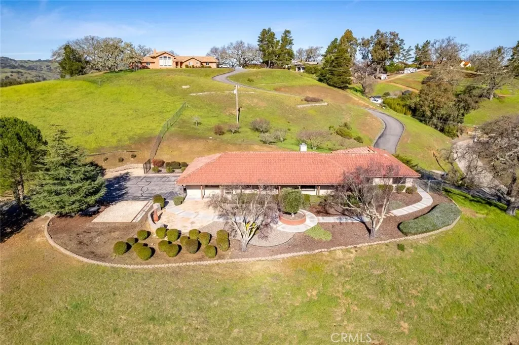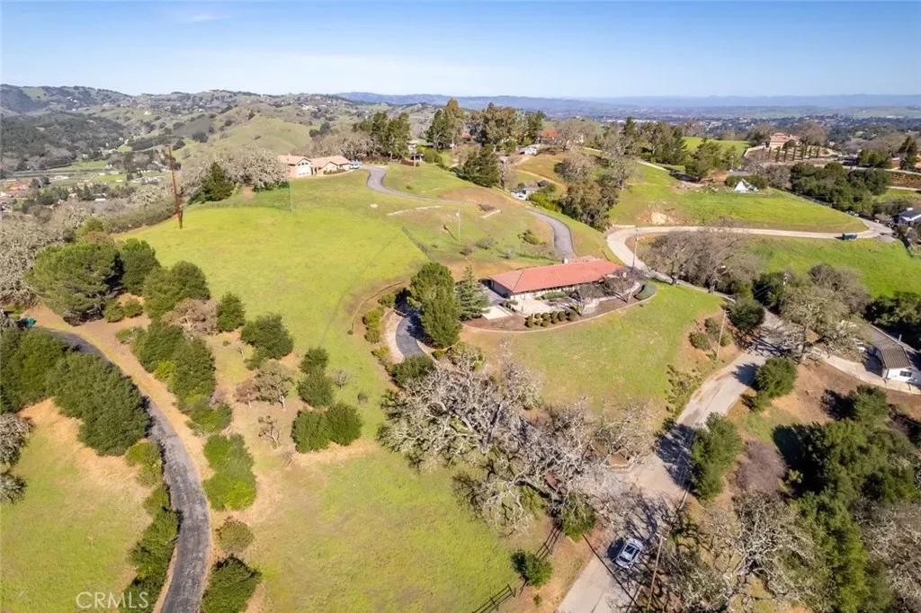 Enjoy single level living in this well cared for 3 bedroom and 2 bath home. Located on the west side of Atascadero, this home is approximately 2,030 square feet and sits on nearly 2.5 acres of gently rolling land. The property is set back from the road, providing a private setting.The open floor plan features hardwood flooring throughout the living, kitchen, dining, family room and hallway. The living room includes high ceilings, a gas fireplace with brick hearth, built-in shelving and picture windows that take in the beautiful and unblockable views.The updated kitchen offers newer appliances and a breakfast area with windows that fill the space with natural light. A slider door adjacent to the kitchen leads to a rear patio, allowing for easy indoor-outdoor living. The hall bathroom has been updated with decorative tile and a walk-in shower with glass enclosure. The spacious primary suite includes a slider door to the rear patio plus two walk-in closets and a full bath with soaking tub and separate shower. Two additional bedrooms enjoy expansive views. A bonus room inside the garage provides flexible space for a home office or fitness area. There are two air conditioning units for year-round comfort. The oversized two-car garage includes a laundry area, workshop and extra workspace. The property is partially fenced and includes an orchard with fruit and nut trees, roses and more. This exceptional property should not be missed. Information not verified.