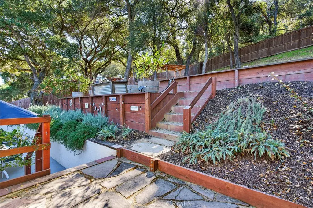 Step outdoors to discover a backyard oasis that invites relaxation and entertaining. Enjoy a glass of Paso Wine on the concrete patio, unwind on the spacious paver terrace, or spend the morning tending to your garden and chicken coop beneath the canopy of mature oaks.