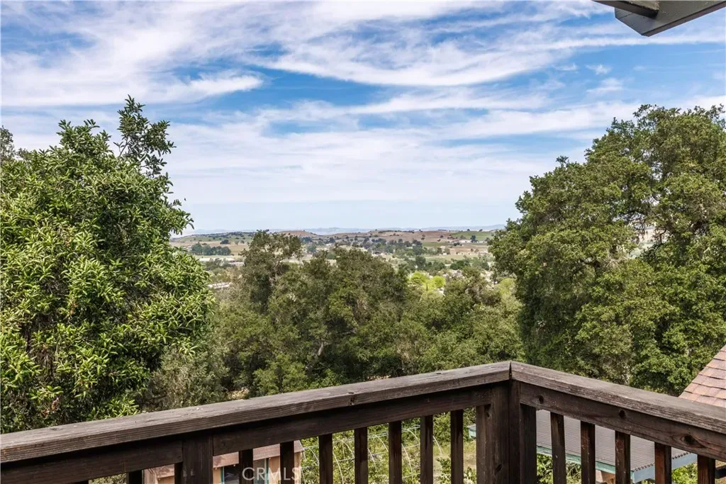 Set among mature oaks on a gently sloping lot, the property captures sweeping views across East Atascadero from nearly every room. The main residence offers 2 bedrooms and 2 bathrooms with a highly functional single-level layout, vaulted ceilings, and an abundance of natural light.