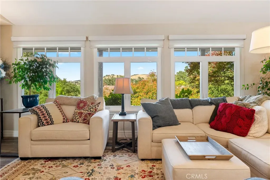 The fully landscaped yard is a standout feature, with extensive hardscaping designed for entertaining and relaxation. Enjoy a Trex deck, spacious patio, pergola, swim spa, firepit seating area, BBQ space, garden boxes, and mature oak trees. A charming she-shed creates the perfect retreat, while a separate Tuff Shed on a permanent foundation with electricity offers additional storage or workspace. There’s also ample room for RV parking or multiple vehicles. Take in scenic views of the Templeton hills and nearby lake from the covered front porch and main living areas.