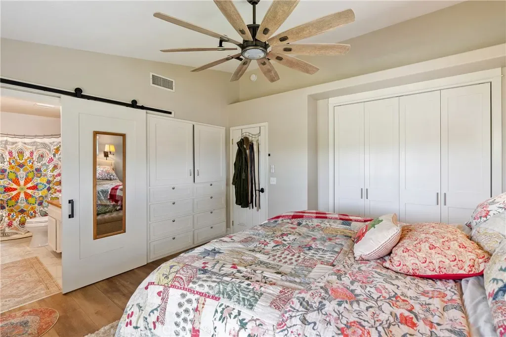 The primary suite is a standout, featuring exceptional built-in cabinetry and abundant storage, along with custom closet organizers and sliding doors that open directly to the backyard—creating a seamless indoor-outdoor connection. The updated ensuite showcases a beautiful walnut countertop, tile flooring, and a tub/shower combination. The spacious guest bedroom also includes closet organizers, while the third bedroom is well-suited as an office. The hall bath has been tastefully updated with granite countertops and tile floors.