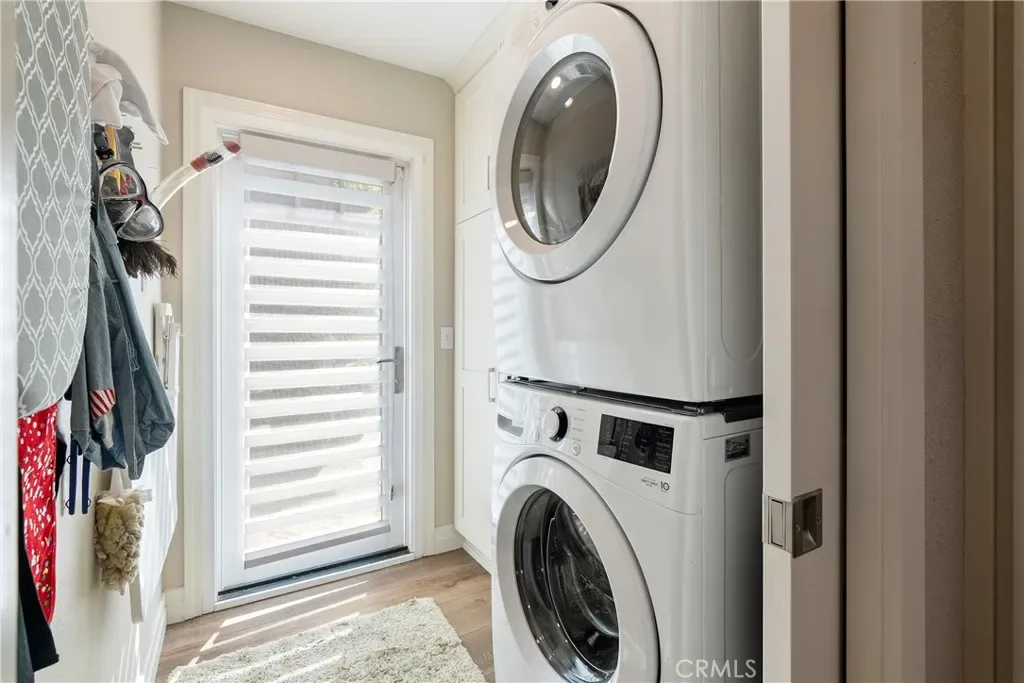 Inside, the home features vinyl plank flooring throughout and an updated kitchen with soft-close cabinetry, quartz countertops, stainless steel appliances, and double ovens. The living room offers abundant natural light, a gas fireplace, and a temperature-controlled wine closet.