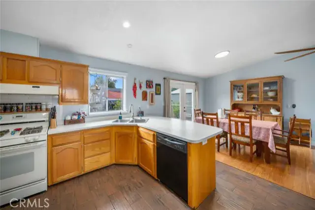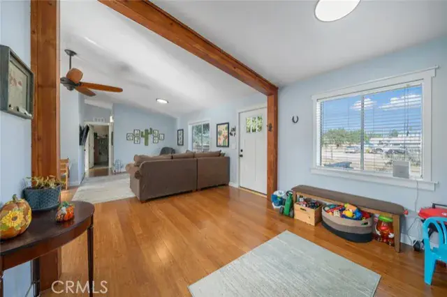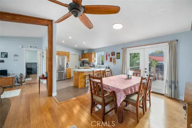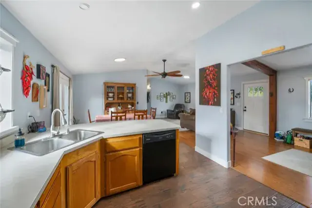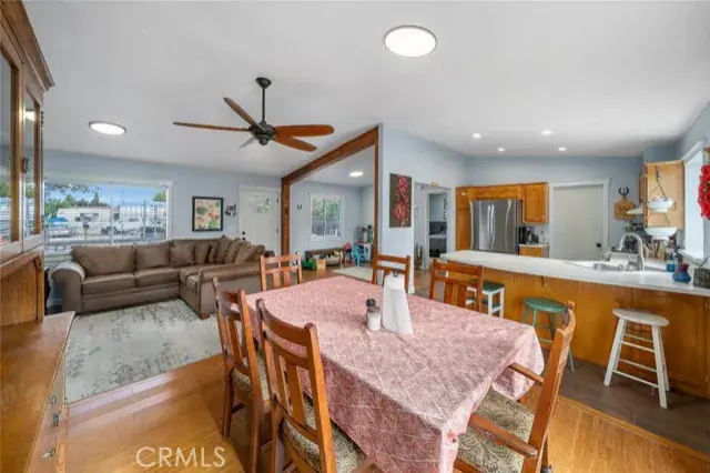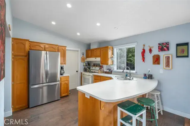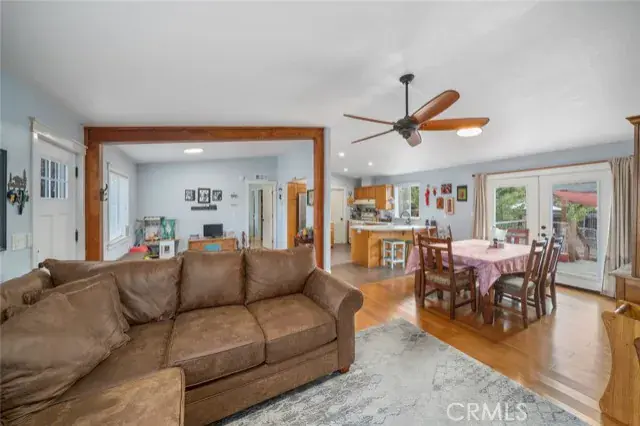 A long, private driveway leads to a welcoming front entry deck and generous parking areas. Inside, you’ll find a bright, open floor plan with vaulted ceilings and a seamless flow between the great room, dining area, breakfast bar, and additional living space—perfect for both everyday living and entertaining. The spacious kitchen overlooks the backyard and includes a pantry and adjacent laundry room for added convenience.