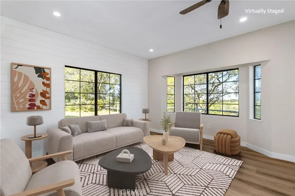 Perched in the scenic hills of West Atascadero, this inviting 4 bedroom, 2.5 bathroom home offers 2202 sf of comfortable living space on ~ 4.3 acres, combining peaceful country living with breathtaking views. The versatile floor plan welcomes you with beautiful new vinyl plank flooring that flows throughout the main level, while an abundance of windows captures the surrounding hillside scenery and fills the home with natural light. The living room showcases stylish shiplap walls and transitions seamlessly into the dining area and kitchen, creating a warm and functional space for everyday living and entertaining. The main level primary suite is a true retreat, featuring vinyl plank flooring and a charming French door that opens to sweeping views. The ensuite bathroom is a standout with its stunning clawfoot tub and separate shower, offering a relaxing place to unwind. Upstairs, three guest bedrooms provide comfortable accommodations, each enjoying impressive views of the surrounding landscape. A bonus room attached to the garage adds flexibility and would make an ideal home office, exercise room or hobby space. Step outside to an expansive patio designed to take full advantage of the beautiful setting—perfect for entertaining, relaxing and enjoying the fresh Central Coast air. On the side of the property, a small barn with an attached fenced pasture offers great potential for a 4-H project or other small animals. Located in the desirable hills of West Atascadero, this property offers a peaceful and private setting that truly feels like a retreat, while still being just a short drive from town. Please review the Virtual Tour for additional information.