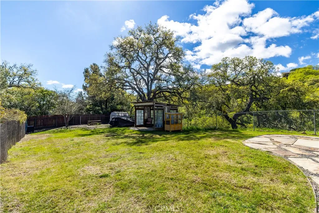 Outdoors, the acreage includes three varieties of mature oaks, fully fenced yard, beautiful lawn, established landscaping with drought-tolerant native plants on timed drip systems, paved driveway, potential RV parking, three-space carport, and even a private golf driving range. Equestrian amenities include a metal framed horse barn with two covered stalls, enclosed feed and tack storage, and a nearby ½+ acre fenced pasture—completing this versatile and thoughtfully improved property.