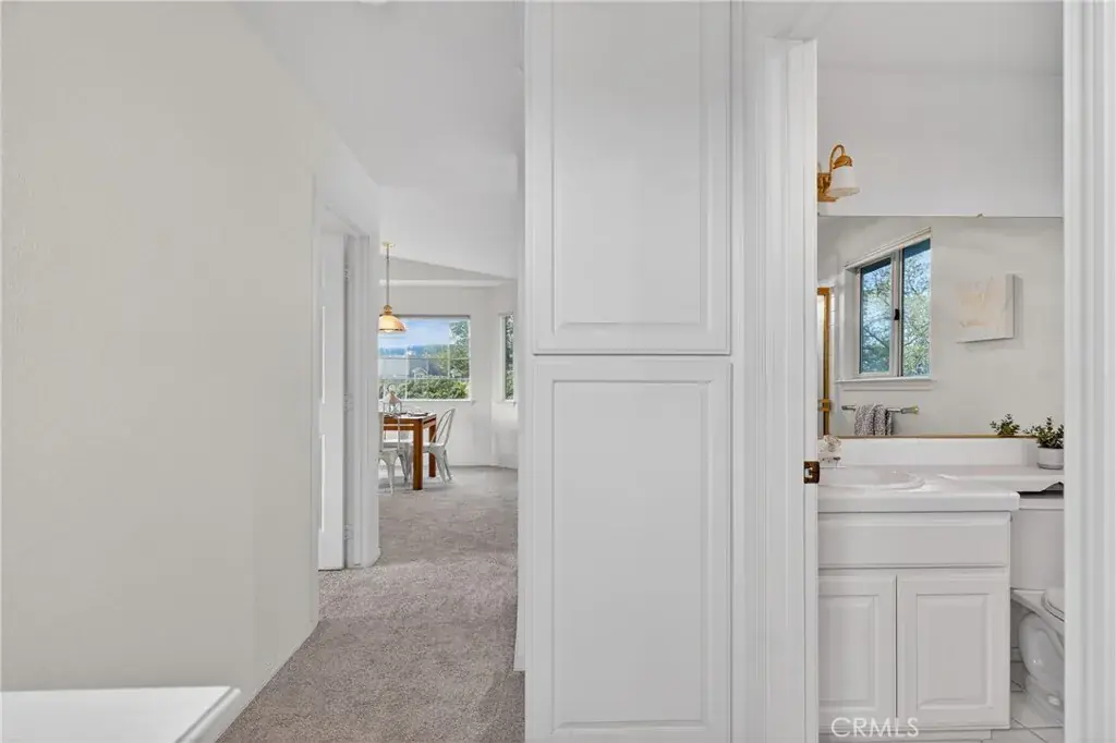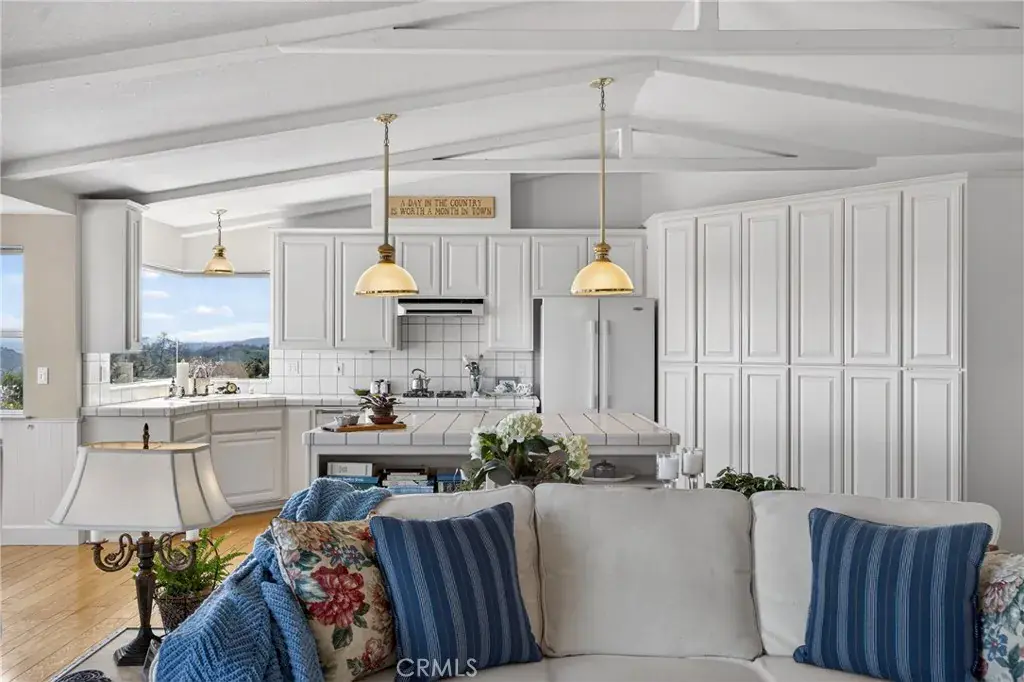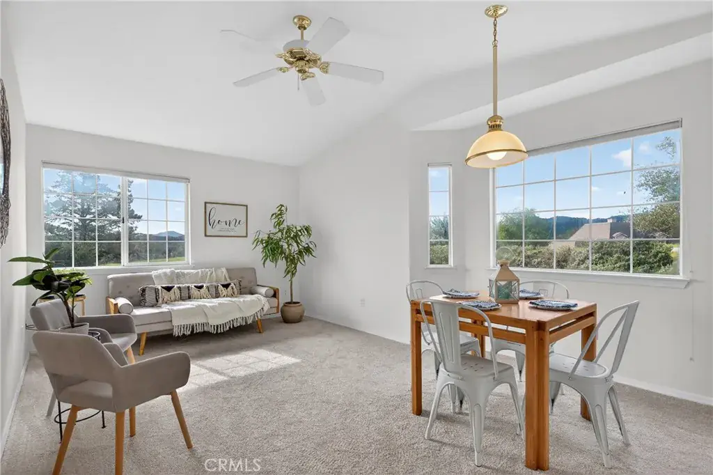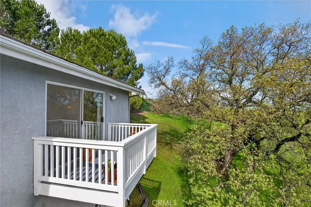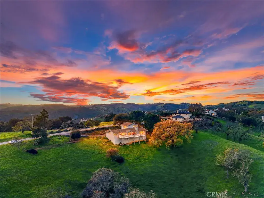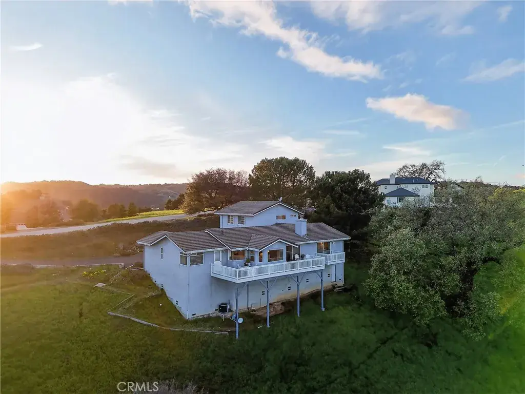 Sweeping panoramic hill and valley views define 11200 Santa Ana Road, a one-owner property positioned to capture the scenery from nearly every angle. Located in the desirable Long Valley Ranches neighborhood, this Central Coast home offers a rare blend of privacy, views, and flexible living spaces in a peaceful hillside setting. The main residence features an open-concept layout with vaulted ceilings and exposed beams, creating a light and airy feel throughout the living and dining areas. Sliding glass doors from both the living room and the primary suite open to upper-level decks, seamlessly blending indoor and outdoor living.The primary suite is privately separated from the additional bedrooms, offering a true retreat. Two secondary bedrooms are located in the opposite wing, one currently used as an office and featuring a glass door that opens directly to the back deck. The kitchen is positioned to enjoy the scenery and includes tile countertops, abundant cabinetry, a center island, and hill views from the kitchen window. The dining area is surrounded by windows, allowing natural light and rolling hills to frame everyday living. A cozy fireplace anchors the main living space, while the primary suite offers its own fireplace and deck access with tranquil views. The primary bathroom includes dual sinks, tile countertops and flooring, a soaking tub beneath tall windows, a walk-in shower with frosted glass enclosure, and built-in storage. A hall bathroom with high ceilings, tile finishes, and natural light connects to the second bedroom. A spacious laundry room offers extensive cabinetry and a generous folding counter. Recent upgrades include the air conditioning system and decking. Adding exceptional flexibility is the fully permitted guest house located above the garage, built in 1995. This private space features an open kitchen flowing into the living area, a center island, hill views from the kitchen window, a spacious bedroom with scenic views, a bathroom with tile flooring and a walk-in shower, new carpet throughout, and its own private deck. The stairway is pre-wired for a chair lift, offering future accessibility. Outdoor living is a highlight, with multiple upper-level view decks, peaceful walking paths, and a charming garden area complete with a greenhouse. With its elevated setting, captivating views, and thoughtfully designed living spaces, 11200 Santa Ana Road offers a peaceful Central Coast lifestyle that feels both private and connected.