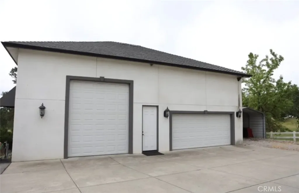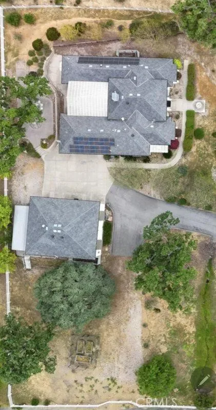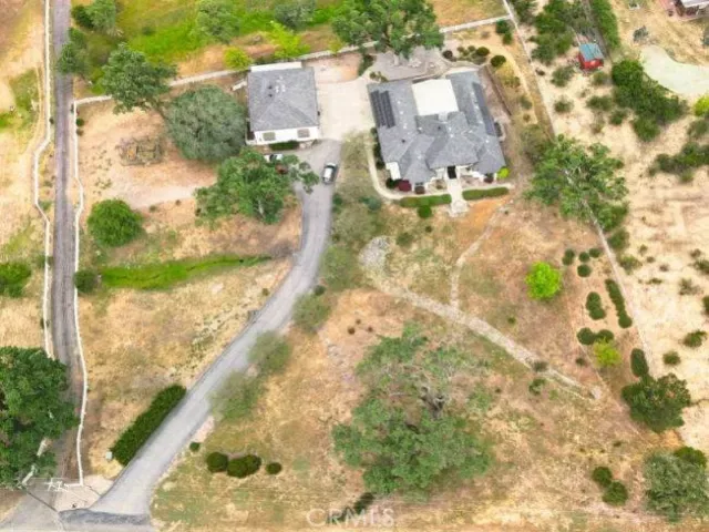 Welcome to this spectacular 1.92 acre property featuring 2647 square foot home with three bedrooms, three bathrooms and a flex room. This custom home offers vaulted ceilings throughout and a gourmet kitchen for entertaining with an oversized refrigerator/freezer and granite countertops.The walk in pantry is spacious for all your storage needs. As you walk into the palatial living room, your greeted with a double-sided fireplace that can be enjoyed from the outdoor patio too. There is a wet bar near the fireplace for your enjoyment as well. As you walk down the hallway, there are two bedrooms that are joined by a jack and Jill bathroom that makes it convenient for living accommodations. The primary suite is extraordinary. You are greeted with another fireplace, a sizable area for your bed and a walk in closet that has top to bottom shelving for clothes and shoes. The primary bathroom has a jetted tub, a separate shower and a water closet. The home has extravagant courtyard that is fully fenced in and you can bbq and sit near the other side of the double sided fireplace for relaxation. There is also a detached garage with RV parking and extra space for more vehicles or storage. There is a loft above that is not permitted. Downstairs, there is also a shower/toilet that is not permitted.Behind the outbuilding, there is an adorable garden shed and garden beds if you enjoy gardening. Other amenities include, patio sitting areas, solar included on the house, fire suppression system, intercom system, a metal carport and lastly a beautiful tree lined driveway.This home has so much to offer!You will enjoy the comforts of the country and just minutes to town. House is AS- IS sale.