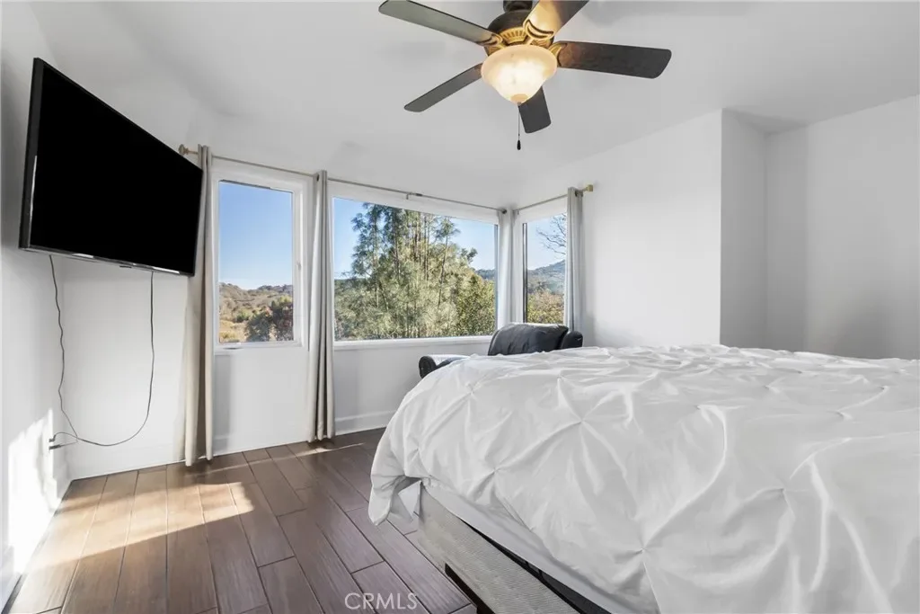 Welcome to this stunning contemporary, passive solar home set on 3.74 scenic acres, offering privacy, serenity and breathtaking views from every level. This thoughtfully updated 2769 sf, 3 bedroom and 3 bathroom residence located in the Chandler Ranch neighborhood, features soaring cathedral ceilings, clerestory windows, skylights and exceptional indoor-outdoor living. The main level offers a light-filled living room with a dramatic wood-burning fireplace, dining area and updated kitchen, ideal for everyday living and entertaining. Upper levels include three spacious bedrooms, two full recently updated baths, interior laundry and a generous loft. The primary suite is a true retreat, with an updated primary ensuite with separate tub and shower and walk-in closet. The primary suite showcases stunning panoramic views and direct access to a private balcony deck to soak in the outside. The lower level features a studio-style guest quarters with a private exterior entrance, kitchenette, living area, built-in Murphy bed and bathroom, ideal for guests, extended family or rental potential. Multiple view decks of the main living areas, guest quarters and primary suite highlight the home’s exceptional setting. The property offers open usable space for gardening, play or outdoor entertaining, along with an animal shelter and fenced area currently used for hobby farming. Thoughtfully landscaped grounds include mature oaks, meandering pathways, picnic areas and drought-tolerant landscaping. Additional features include an extra-deep two-car garage with cabinetry and workbench, RV parking and a storage building. Impeccably maintained and showcasing pride of ownership, this rare property offers privacy, views, versatility and an energy-conscious passive solar design. View the Visual Tour for more details.