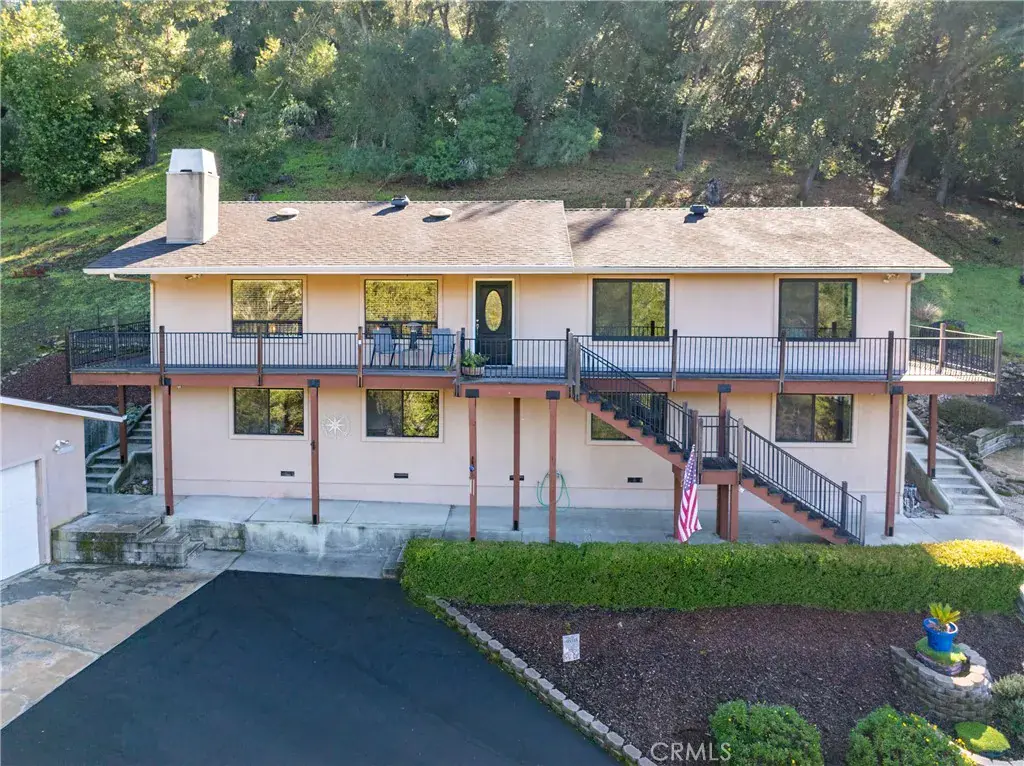 Tucked gracefully into the hillside on 4.27 tranquil acres, this stunning 2700 sf,3 bedroom, 3 bathroom home offers the perfect blend of privacy, comfort and breathtaking views. Surrounded by oak trees and natural beauty, the setting feels peaceful and secluded while still offering plenty of space to enjoy the outdoors. Step inside the main living area and you’re immediately welcomed by beautiful hardwood floors, vaulted ceilings and expansive windows that frame the spectacular scenery beyond. A quaint wood-burning stove with a brick surround anchors the living room, creating a cozy focal point for cool evenings. The dining area is thoughtfully positioned between the living room and kitchen, making it ideal for both everyday living and entertaining. The contemporary kitchen features granite countertops, stainless steel appliances and a spacious walk-in pantry, offering both style and functionality. Down the hall, you’ll find two comfortable guest bedrooms and a well-appointed main bathroom. At the end of the hallway, the primary suite serves as a private retreat, boasting vaulted ceilings and multiple windows that flood the space with natural light. The ensuite bathroom includes dual granite topped vanities, a walk-in closet and a separate bathing area with a relaxing soaking tub/shower combination. Downstairs, a spectacular bonus area provides endless possibilities—perfect for a family room, exercise space, hobby area or even future expansion. Outside, the property truly shines. A spacious back patio offers ample room for entertaining or simply relaxing and taking in the surroundings. To the side of the home, enjoy a fantastic firepit and putting green, sure to provide hours of fun and memorable gatherings. A large RV parking area accommodates a trailer, boat or additional vehicles with ease. With its divine location, open space and serene natural setting, this exceptional property is a must-see for those seeking privacy, views and a true connection to nature. Please review the Virtual Tour for more information.