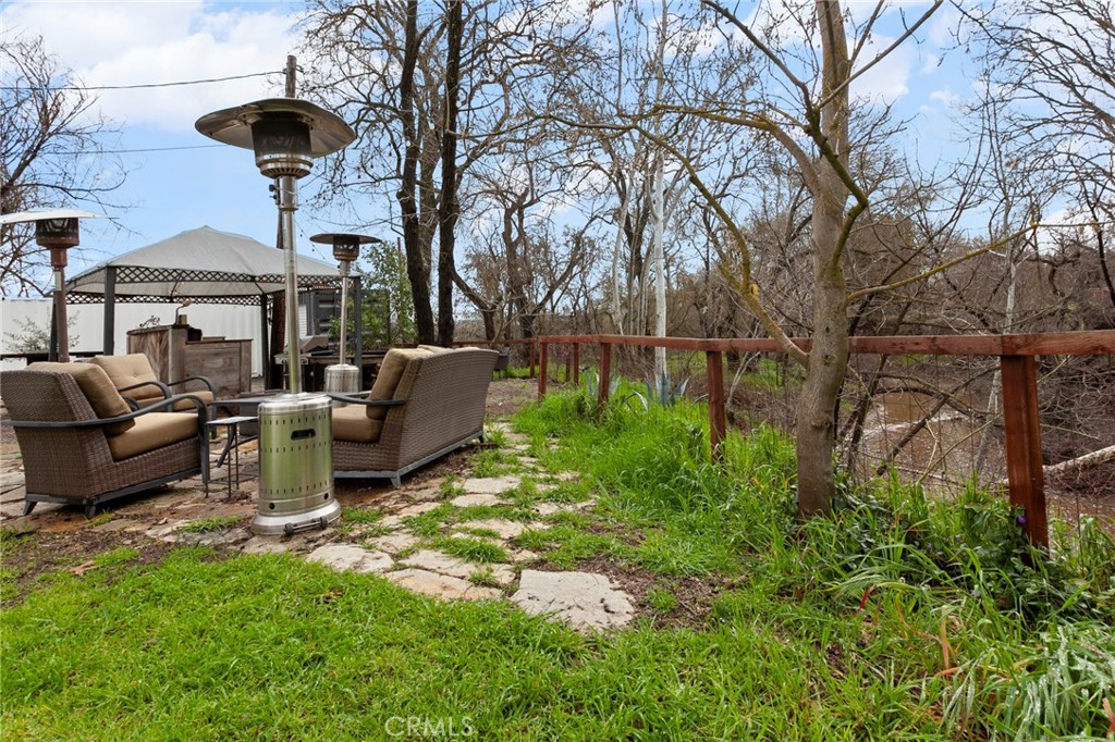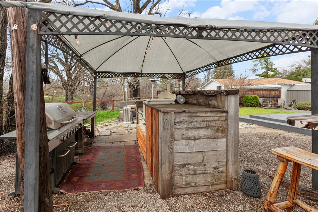 Outdoor living is just as inviting, with an outdoor kitchen ideal for entertaining under the oaks and enjoying the serene creekside setting. Mature fruit trees dot the property, adding both beauty and seasonal bounty. A Tesla charger provides added convenience for electric vehicle owners.