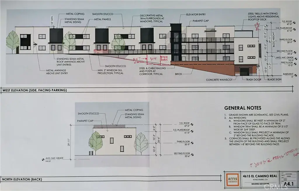 Building plans being completed and construction to start in middle of 2026. Conditional Use Permit approved for 16 units and commercial/retail space. Commercial lot in developing business zone in Atascadero. Soils report, Topo plan and easement description are available. Attached are plans for 3 story building.