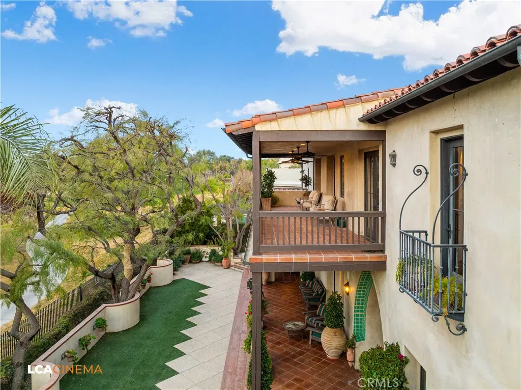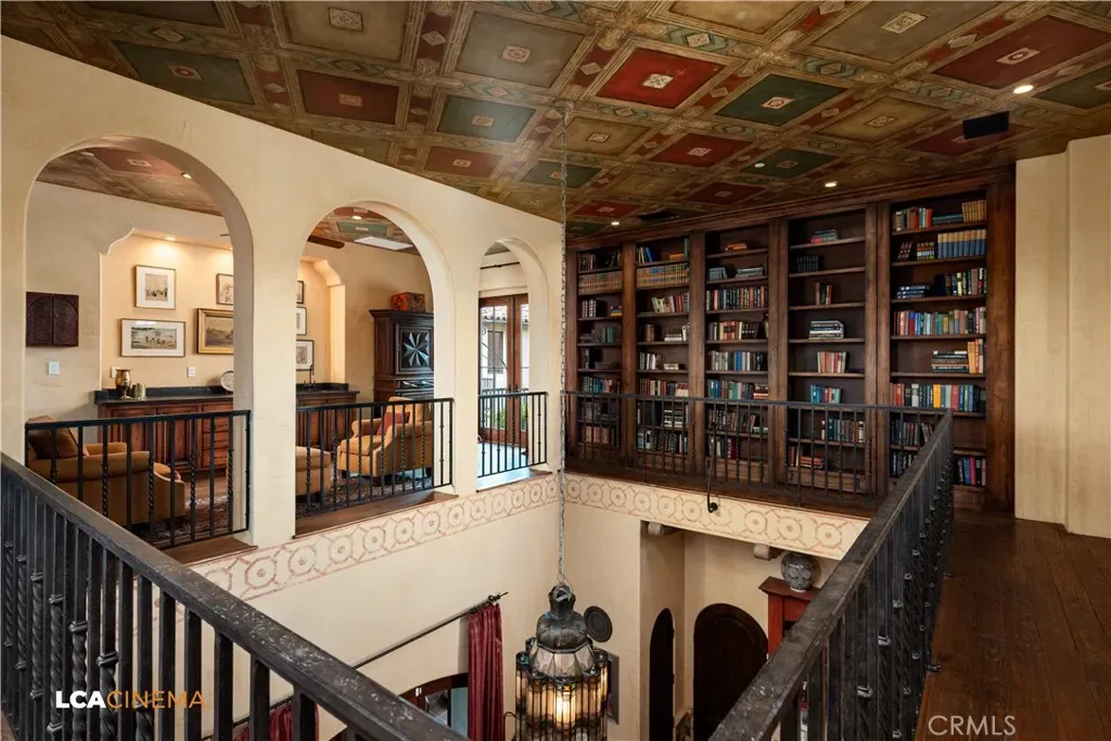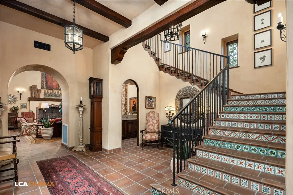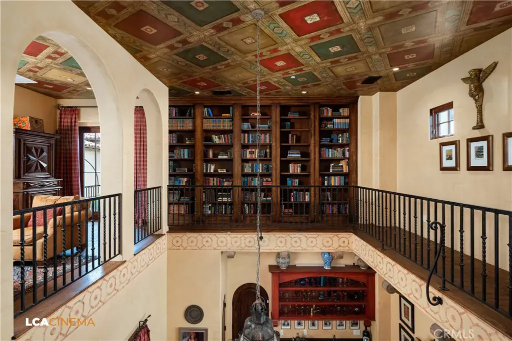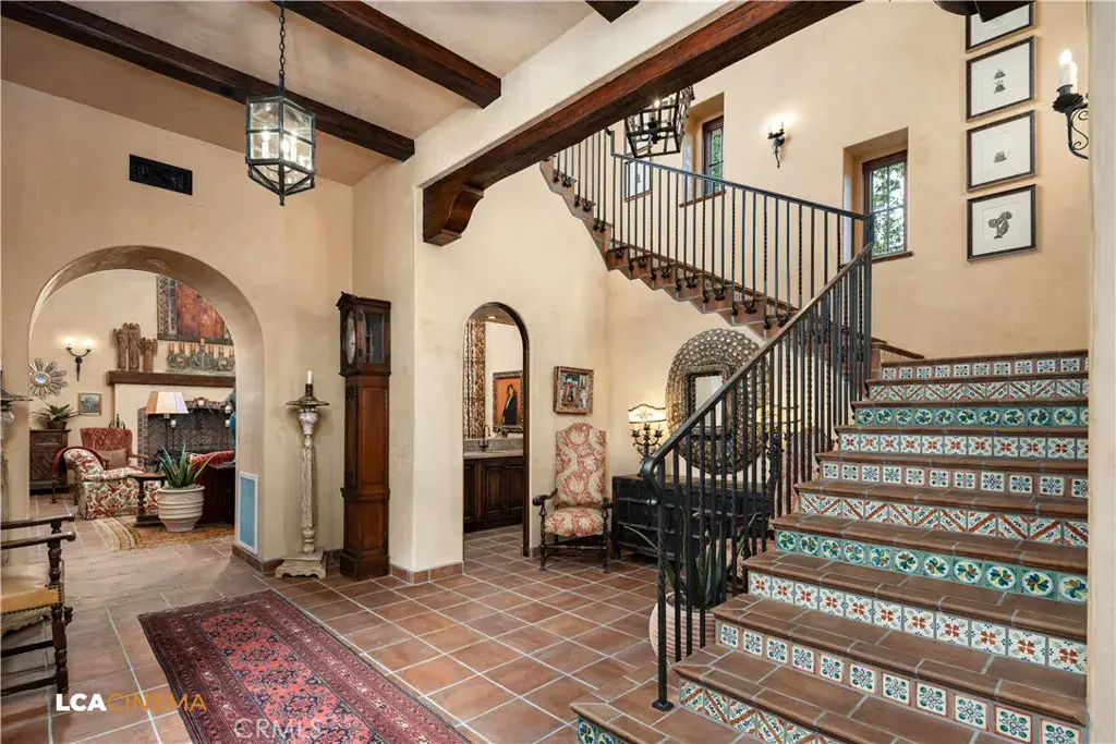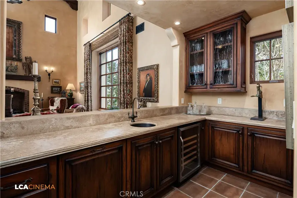 This stunning Spanish Colonial home located on the Seven Oaks Golf Course is within the finest enclave of homes in Bakersfield. A Santa Barbara design inspired by the original and only owner is a true one-of-a-kind masterpiece. This property features custom craftsmanship and meticulously chosen materials throughout. Upon entering, you’re greeted by a grand staircase and a foyer leading into the courtyard featuring a Spanish fountain. Moving into the heart of the home, the kitchen offers both beauty and functionality boasting an oversized island, Viking appliances, double ovens, and a spacious butler’s pantry. The luxurious primary bedroom displays an elegant fireplace and incredible his and her bathrooms and closets. Spacious bedrooms with two bedrooms bringing you the comfort of ensuites giving this home room for extended family. Hand-selected materials including handcrafted beams, Mexican Talavera tiles, cotto pavers, custom woodwork, hand painted murals, and unmatched detailing of the Spanish centric interior design gives this home its unique character. Designed for the ultimate entertaining experience, this home offers a grand living room with a stately fireplace, an upstairs library overlooking an entertainment bar with its own private entrance, and a majestic wine cellar in the home’s basement. Outside the home is equally impressive as the property boasts golf course views, a pool, spa, multiple balconies, and a private entrance to the primary bedroom. A gated driveway and beautifully landscaped grounds complete this luxurious estate. Bathroom count is as follows: 2 full, 3 3/4, 4 1/2. Square foot of home is 9128