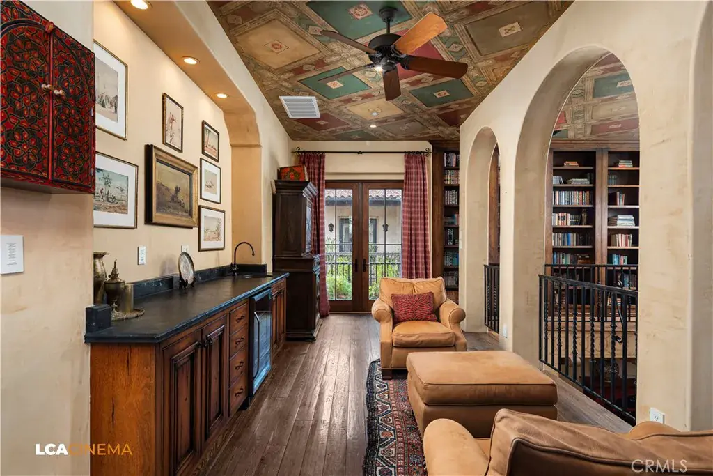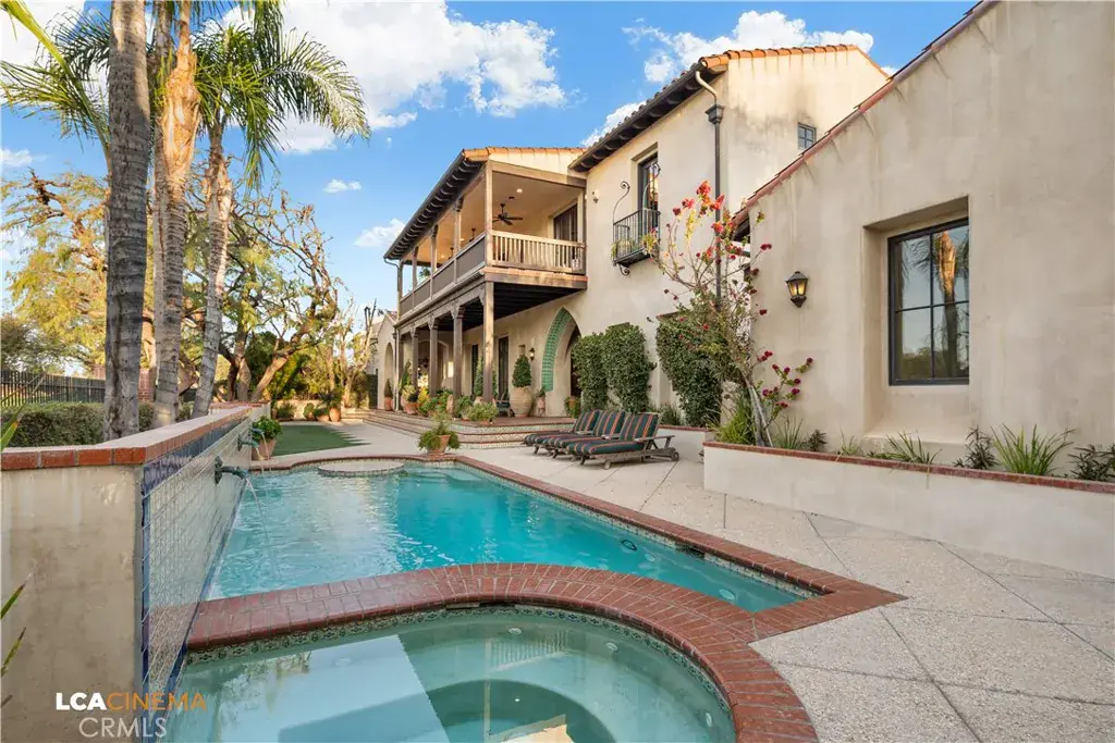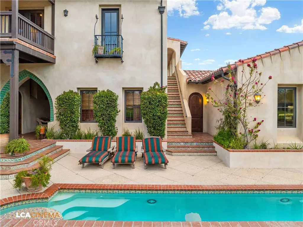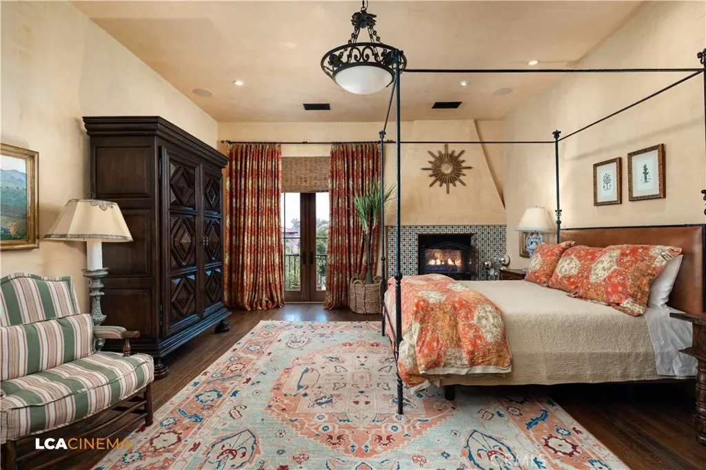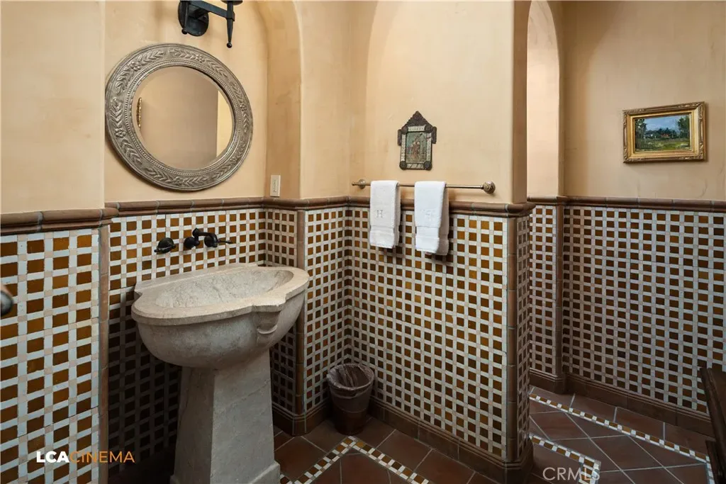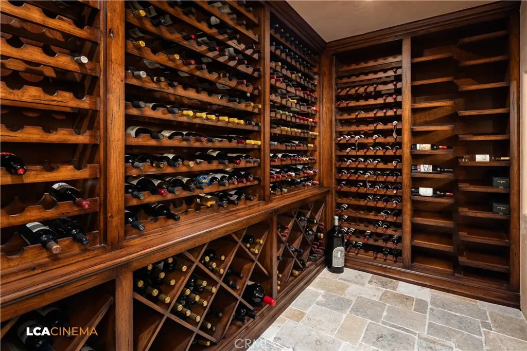 This stunning Spanish Colonial home located on the Seven Oaks Golf Course is within the finest enclave of homes in Bakersfield. A Santa Barbara design inspired by the original and only owner is a true one-of-a-kind masterpiece. This property features custom craftsmanship and meticulously chosen materials throughout. Upon entering, you’re greeted by a grand staircase and a foyer leading into the courtyard featuring a Spanish fountain. Moving into the heart of the home, the kitchen offers both beauty and functionality boasting an oversized island, Viking appliances, double ovens, and a spacious butler’s pantry. The luxurious primary bedroom displays an elegant fireplace and incredible his and her bathrooms and closets. Spacious bedrooms with two bedrooms bringing you the comfort of ensuites giving this home room for extended family. Hand-selected materials including handcrafted beams, Mexican Talavera tiles, cotto pavers, custom woodwork, hand painted murals, and unmatched detailing of the Spanish centric interior design gives this home its unique character. Designed for the ultimate entertaining experience, this home offers a grand living room with a stately fireplace, an upstairs library overlooking an entertainment bar with its own private entrance, and a majestic wine cellar in the home’s basement. Outside the home is equally impressive as the property boasts golf course views, a pool, spa, multiple balconies, and a private entrance to the primary bedroom. A gated driveway and beautifully landscaped grounds complete this luxurious estate. Bathroom count is as follows: 2 full, 3 3/4, 4 1/2. Square foot of home is 9128