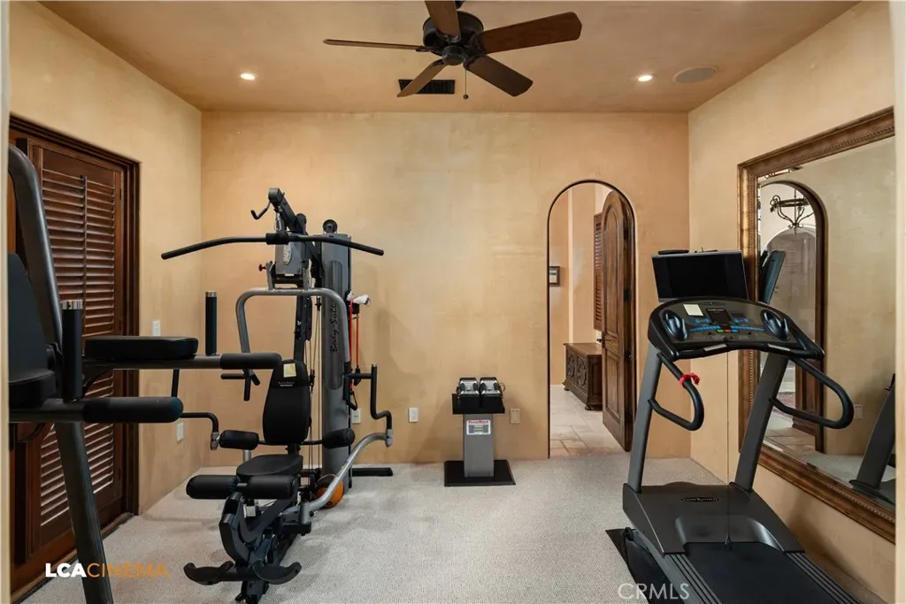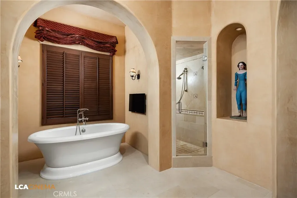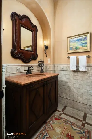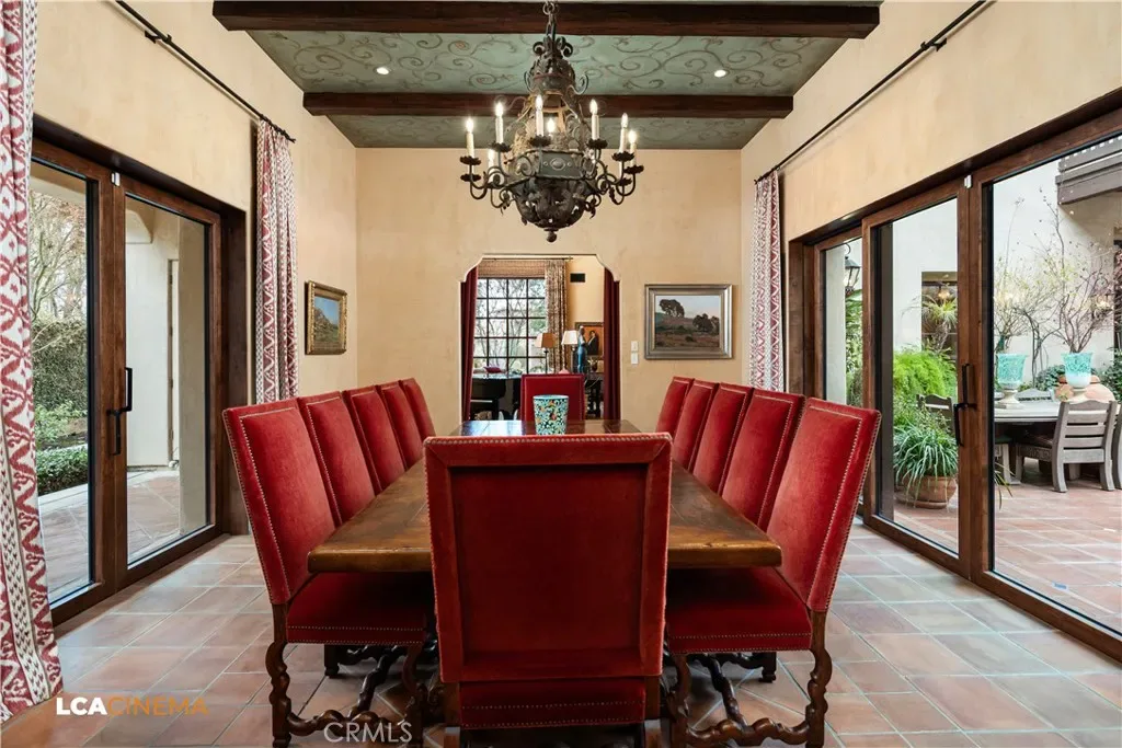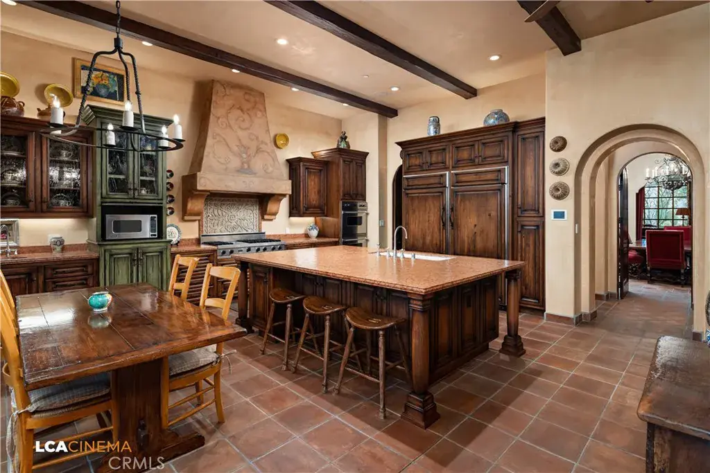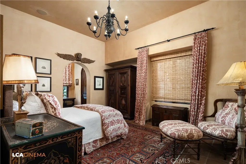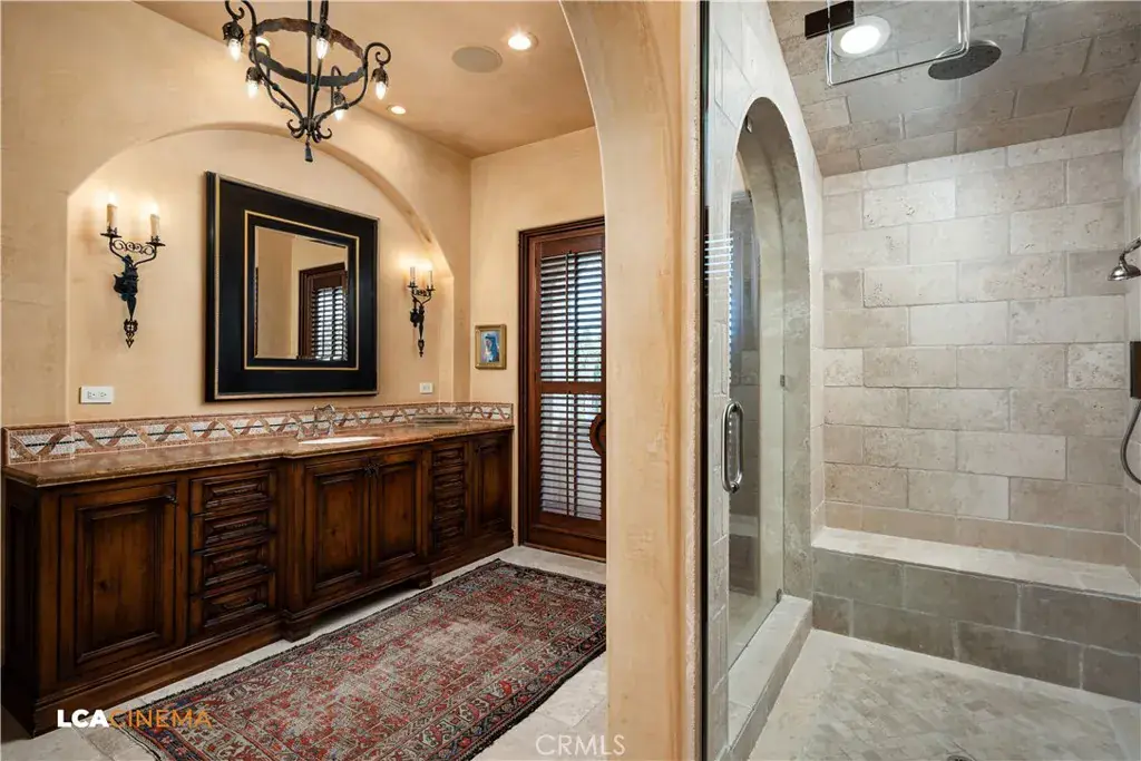 This stunning Spanish Colonial home located on the Seven Oaks Golf Course is within the finest enclave of homes in Bakersfield. A Santa Barbara design inspired by the original and only owner is a true one-of-a-kind masterpiece. This property features custom craftsmanship and meticulously chosen materials throughout. Upon entering, you’re greeted by a grand staircase and a foyer leading into the courtyard featuring a Spanish fountain. Moving into the heart of the home, the kitchen offers both beauty and functionality boasting an oversized island, Viking appliances, double ovens, and a spacious butler’s pantry. The luxurious primary bedroom displays an elegant fireplace and incredible his and her bathrooms and closets. Spacious bedrooms with two bedrooms bringing you the comfort of ensuites giving this home room for extended family. Hand-selected materials including handcrafted beams, Mexican Talavera tiles, cotto pavers, custom woodwork, hand painted murals, and unmatched detailing of the Spanish centric interior design gives this home its unique character. Designed for the ultimate entertaining experience, this home offers a grand living room with a stately fireplace, an upstairs library overlooking an entertainment bar with its own private entrance, and a majestic wine cellar in the home’s basement. Outside the home is equally impressive as the property boasts golf course views, a pool, spa, multiple balconies, and a private entrance to the primary bedroom. A gated driveway and beautifully landscaped grounds complete this luxurious estate. Bathroom count is as follows: 2 full, 3 3/4, 4 1/2. Square foot of home is 9128