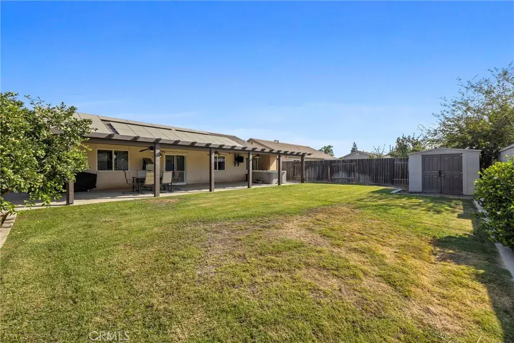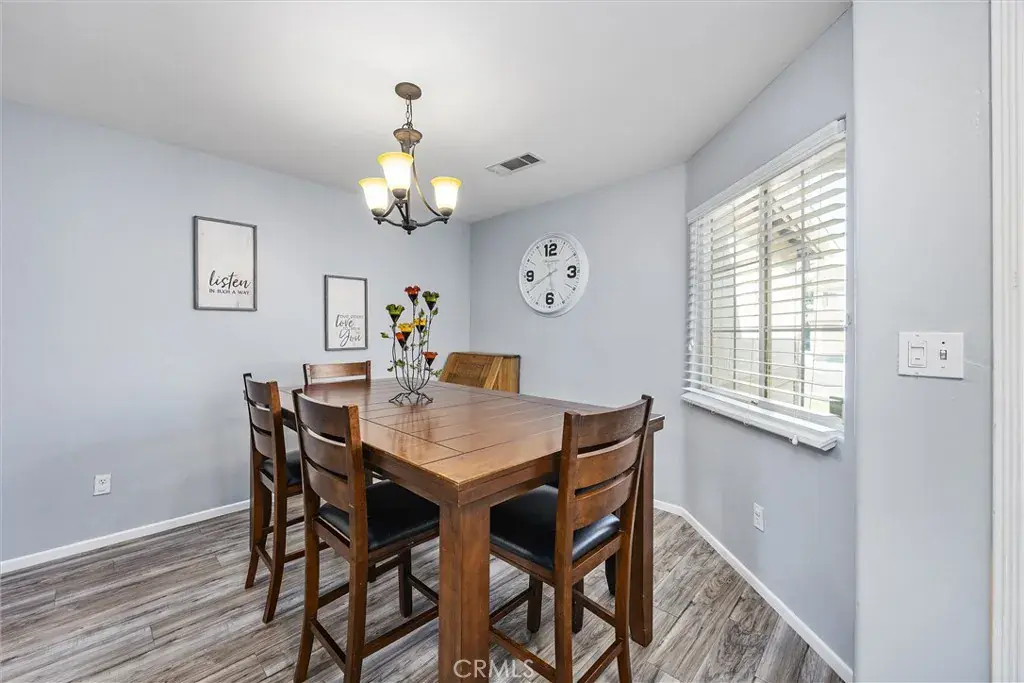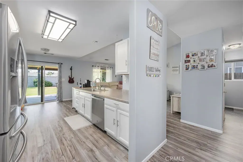 NW split-wing home offering 4B/2B and 1,843 sqft. of thoughtfully designed living space. Step inside to durable wood-look flooring and a bright, open kitchen featuring crisp white cabinetry, abundant storage, and appliances less than 2 years old. The formal dining room flows seamlessly into the kitchen, creating the ideal set-up for entertaining family and friends. A dedicated storage area helps keep your home organized, enhancing functionality. The backyard is built for relaxation and gatherings, boasting a spacious covered patio with recessed lighting and ceiling fans, plus a spa that stays with the property. Located near both elementary and high schools, this home blends comfort and convenience.