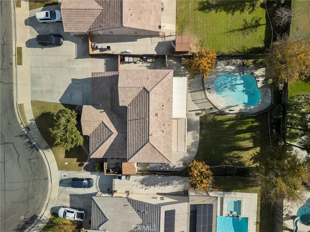 Welcome to your new home! This beautifully maintained five-bedroom, three-bath residence offers generous living space across two levels. The inviting kitchen features ample counter space, a cozy breakfast nook, and seamless flow into the family room, perfect for everyday living and entertaining. The lower level includes a spacious bedroom and full bathroom ideal for guests or in-law accommodations, plus a versatile room that can serve as a bedroom or home office. An additional multi-purpose room offers flexibility for a game room, play area, or extra living space. Upstairs, the primary suite provides a private retreat with an en-suite bath featuring dual vanities, a soaking tub, and a separate shower, while two additional bedrooms share a full bath. Step outside to enjoy a resort-style backyard with a sparkling saltwater pool and space for outdoor entertaining. Additional highlights include multiple storage options, quiet cul-de-sac, and oversized RV access for all of your toys!