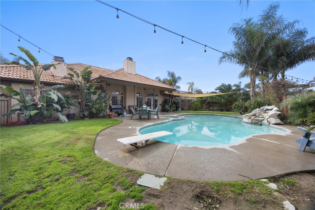 Discover unparalleled single-story living in the Shiloh Estates. This 2,633 sq. ft. residence offers a flowing, open floor plan with tall ceilings designed for seamless entertaining and daily comfort. The interior features 4 spacious bedrooms, 2.5 bathrooms, a formal dining area, a laundry-room with complete wash sink and abundant cabinet storage, master bedroom has dual fire place sharing with the Jacuzzi tub, nice size walk-in shower, also patio access to the back yard, a dedicated office/den ideal for quiet productivity or remote work and solar panels to insure a comfortable electrical bill year around. Step outside to your private, backyard with a nice size covered area for your outdoor furniture setup a sparkling in-ground swimming pool & Jacuzzi perfect for summer BBQ gatherings and relaxation. With exquisite curb appeal and a convenient with a generous 3-car garage, this home offers a great size to grow and in a great area of Bakersfield.