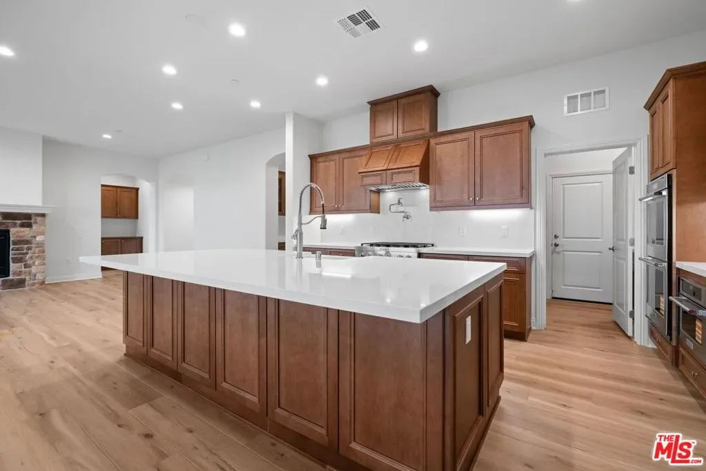 MOVE-IN READYStunning 4-bedroom, 3.5-bath home in Belcourt at Seven Oaks with 2,862 sq. ft. of living space on an 11,589 sq. ft. cul-de-sac lot. This elegant residence features an office and pantry with frosted glass doors, formal dining, and inviting indoor and outdoor fireplaces. The chef’s kitchen showcases chestnut maple cabinets, quartz kitchen island, counters and backsplash, cast iron farmhouse sink, upgraded kitchen faucet, pot filler, and KitchenAid appliances including, double ovens, 6-burner cooktop, microwave, and dishwasher. Designer upgrades include glass uppers at the breakfast nook and butler’s pantry, framed mirrors at Primary bath and powder room and upgraded flooring throughout. The luxurious primary suite has French doors to rear yard and boasts a spa-like bath with rain showerhead. Solar w/battery and backyard landscaping included. Perfect for entertaining and everyday living in a desirable non-gated community close to all the best of Seven Oaks. Clubhouse Fitness Center, Community pool and more.