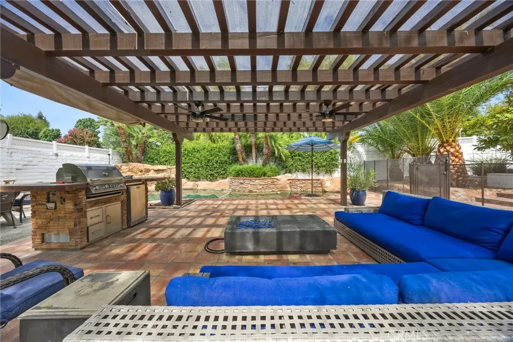 Welcome Home…. to this unique and one of kind villa tucked in Country Club Estates just a short walk to Bakersfield Country Club. The property is a true oasis and features everything your family needs to have your own private resort. The interior boasts high ceilings and open concept complete with fire place and wall to wall tile and large windows . The kitchen is a chefs dream, complete with 3 large wine refrigerator, commercial stove and extra large refrigerator with lots of counter space. The living quarters are spacious with plenty of room for the whole family which include 4 bedrooms and a flex room that gives your family the option for a 4th bedroom. Let’s also include4 well designed bathrooms that round out the living quarters.