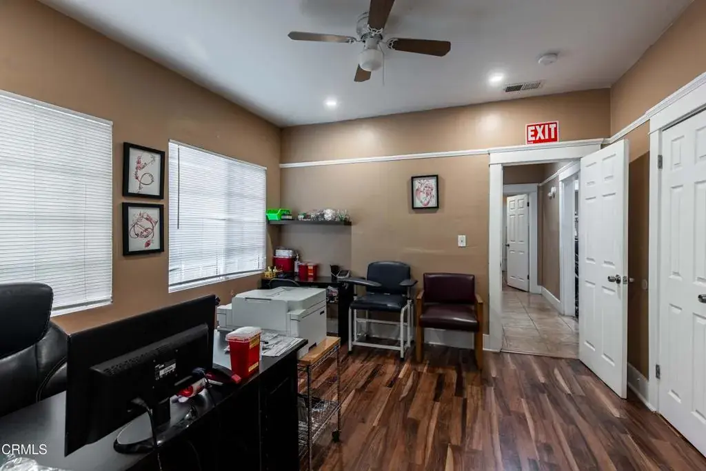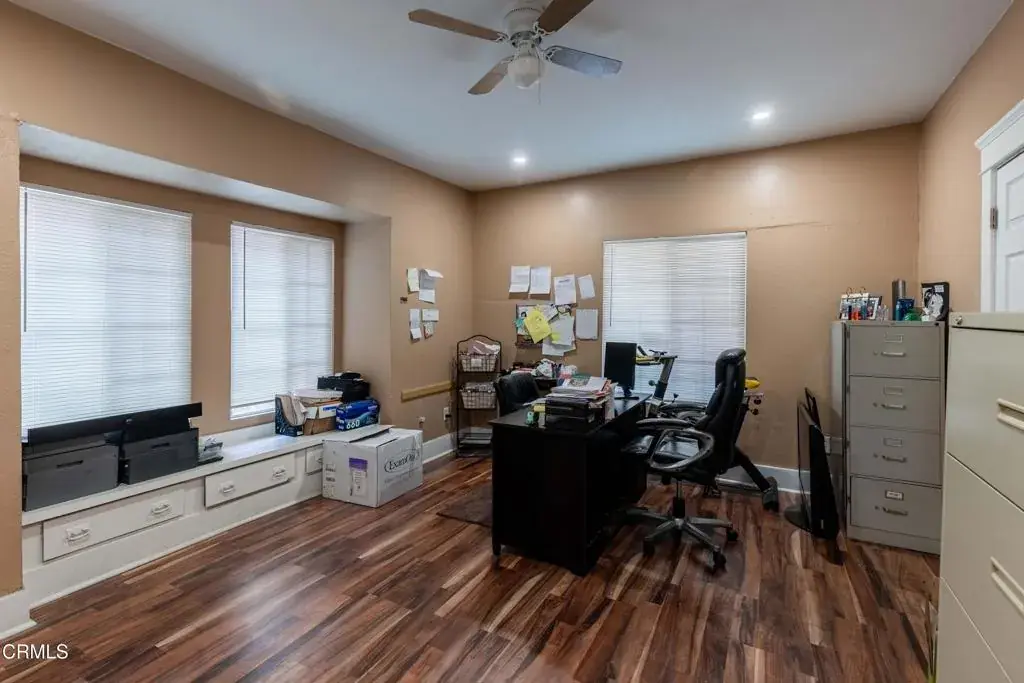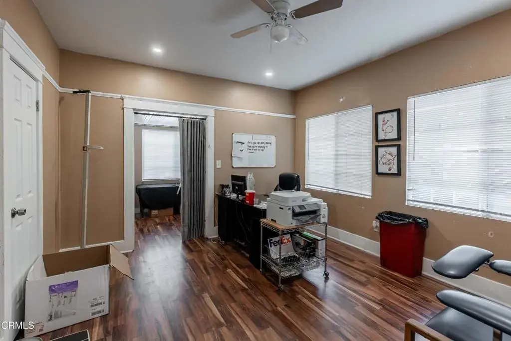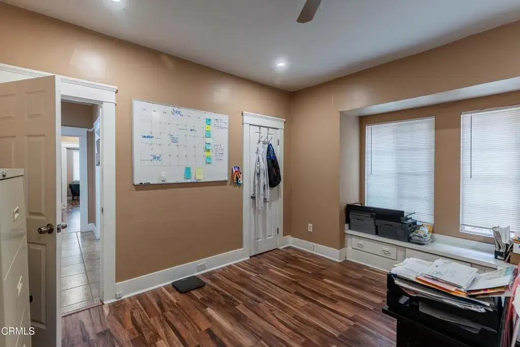 Attractive residence (zoned C-O, Professional and Administrative Office Zone) converted into a business office with a detached studio. It is situated on a large corner lot in a high traffic area of downtown Bakersfield (H St. and 5th St.) with alley access. The main building has 2 bedrooms, a spacious family room/living room combo, a full bath, a laundry room and a kitchen. It was significantly remodeled and improved about 5 years ago. The family/living room is being used as the main office space and the 2 bedrooms can be used as private offices. There is LVP flooring in most of the living areas. The kitchen features tile flooring, stainless-steel appliances and granite counters. The studio consists of a living area with a bedroom, kitchen and a bathroom which includes a walk-in shower.