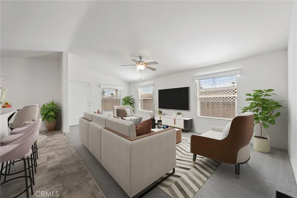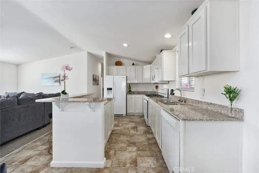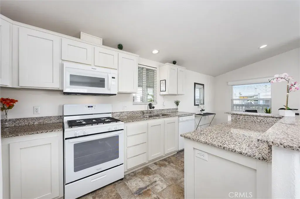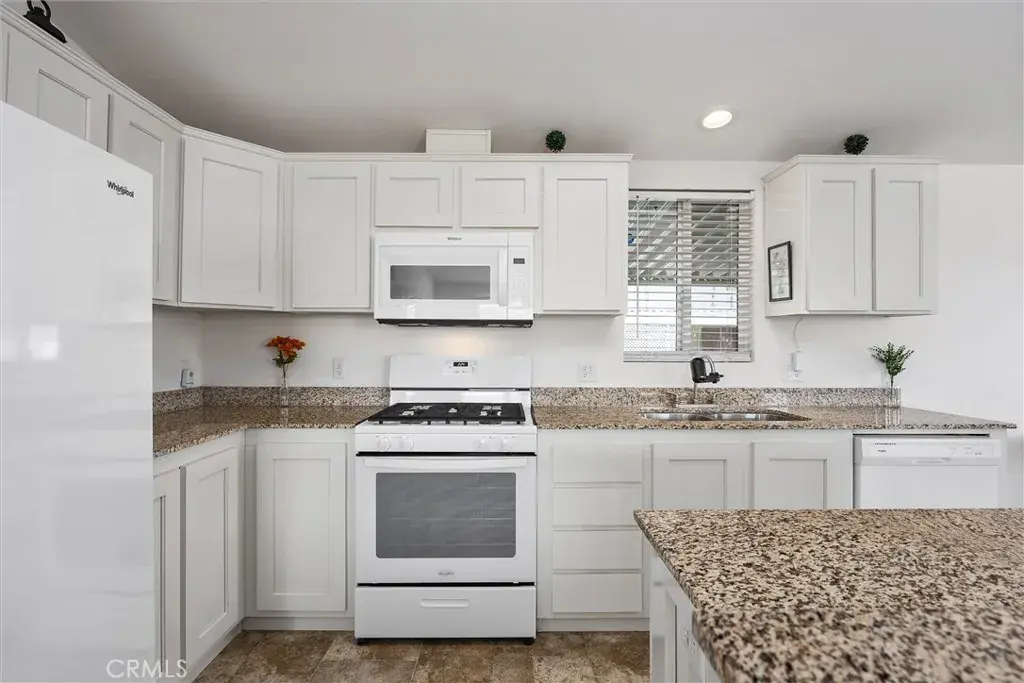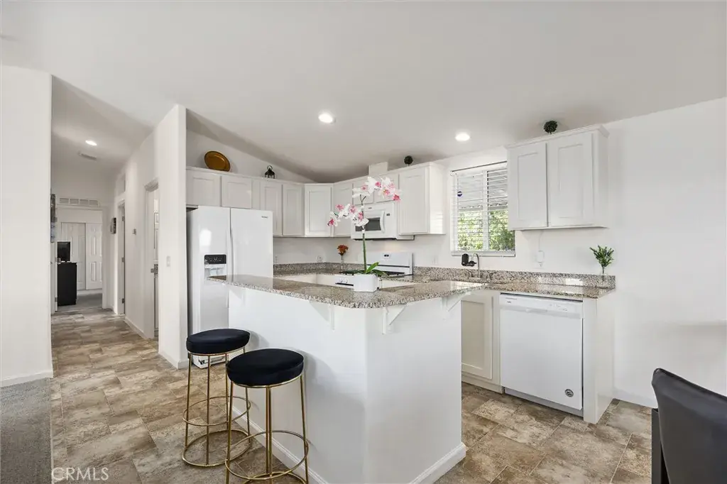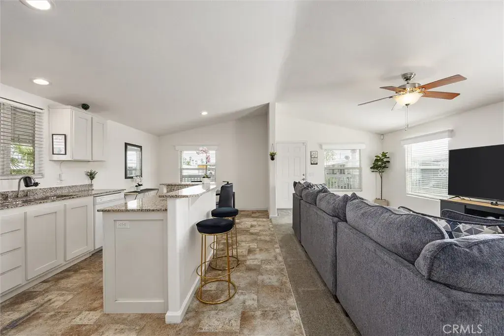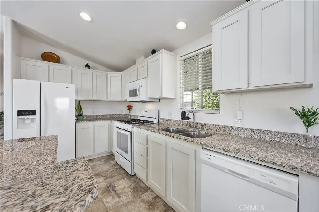 Experience modern comfort in this beautifully maintained 2019 double-wide manufactured home, ideally located in the desirable Smoke Tree Mobile Estates. Offering 1,369 sq ft of thoughtfully designed living space, this move-in ready residence features three spacious bedrooms and two bathrooms, including a primary suite. The inviting kitchen is appointed with sleek white cabinetry, granite countertops, and a full suite of Whirlpool appliances, while the open layout seamlessly flows into the dining and living areas. Additional highlights include indoor laundry, a convenient carport, and a low-maintenance front yard. Residents of Smoke Tree enjoy access to community amenities such as a sparkling pool and welcoming clubhouse, perfect for both relaxation and gatherings. Combining style, functionality, and a vibrant neighborhood setting, this home is a must-see!