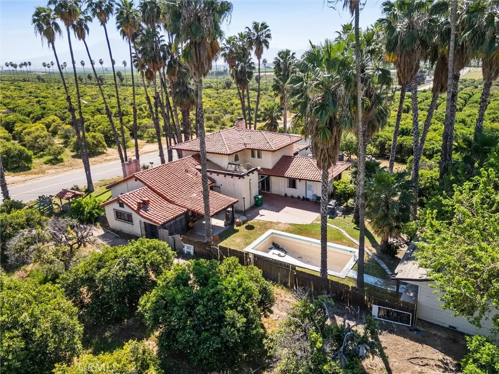 Welcome to your very own Private Rancho with Warm Hacienda Charm. This rare property features 8.2 acres of income-producing citrus and an additional 1-acre homesite, blending estate living with expansive views in every direction. This character-rich home offers inviting interiors with paver tile floors and multiple fireplaces anchoring the living and dining areas, creating a warm setting for gatherings. The kitchen is equipped with a commercial-grade range, custom tile backsplash, copper hood, & generous prep space. A versatile bonus space, staged as a game room, offers flexibility for entertaining or everyday living. The primary suite serves as a retreat with its own fireplace & balcony, where you can enjoy gentle breezes, sweeping views and the scent of citrus groves. Architectural details such as exposed beams, wrought iron accents, and an open layout enhance the home’s distinctive appeal. Outdoors, enjoy an inground pool, perfect for relaxing while taking in the serene surroundings
