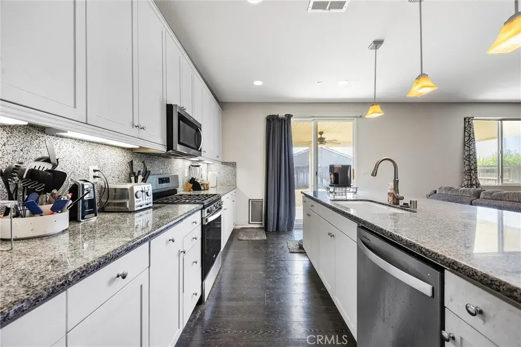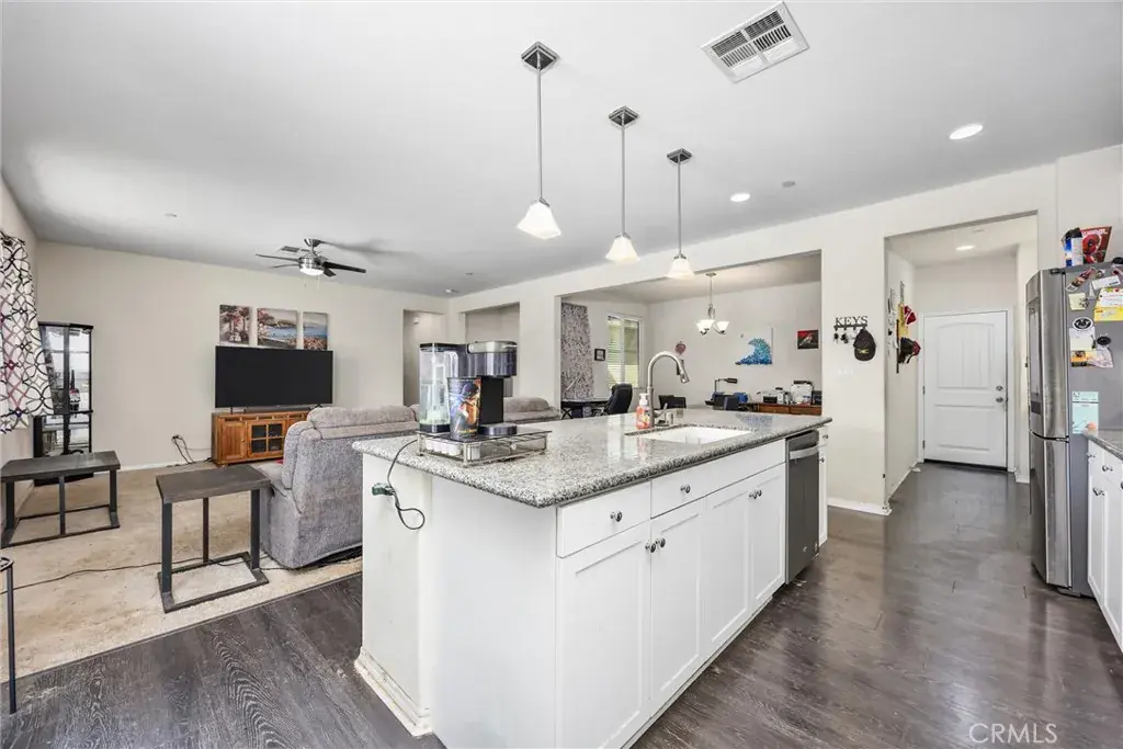 Welcome to this beautiful single-story home offering 4 spacious bedrooms and 2 full baths across nearly 2,000 square feet of living space. Located in a desirable southwest Bakersfield neighborhood, this residence features an inviting open-concept floor plan with a bright, airy great room that flows seamlessly into the kitchen and dining area—perfect for entertaining or family gatherings. The kitchen boasts ample counter space, a large center island, and modern cabinetry.