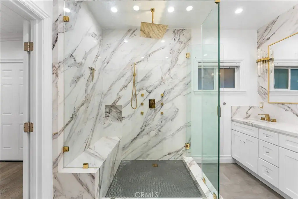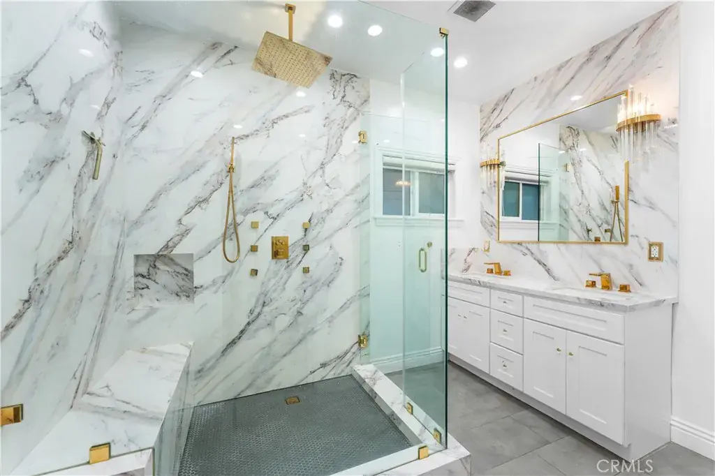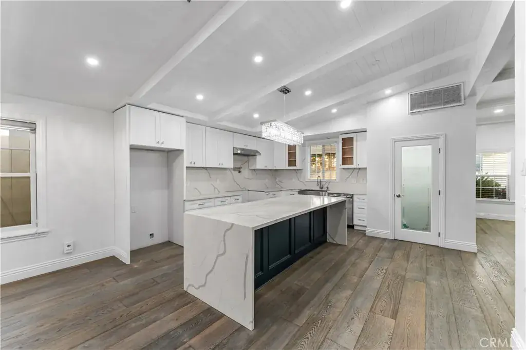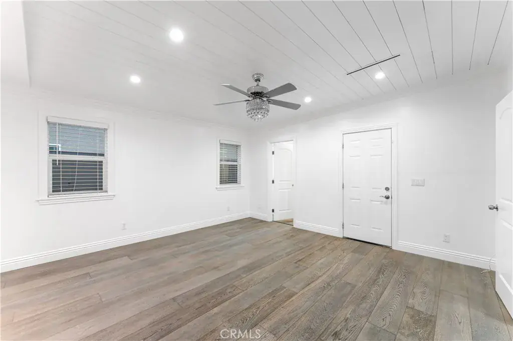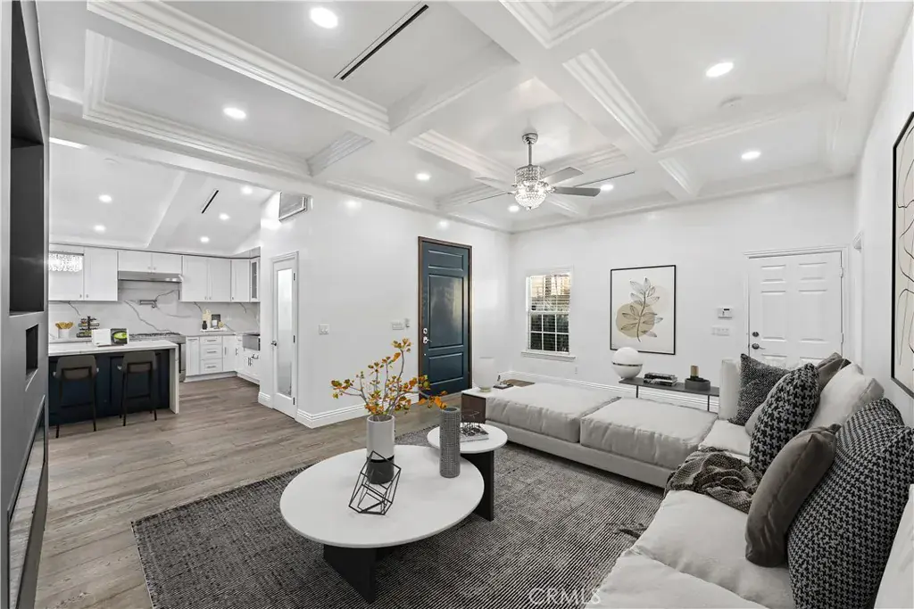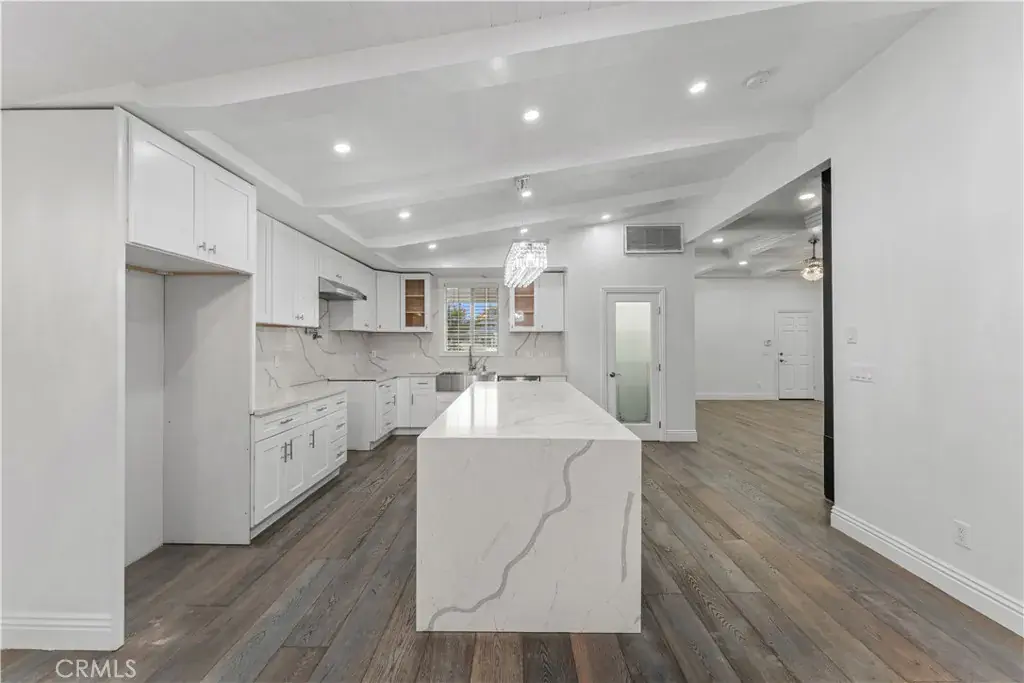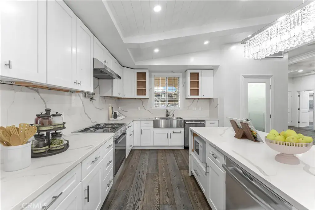 Welcome to 6418 Ringsdale Court, a true standout nestled at the end of a quiet cul-de-sac in one of Bakersfield’s most desirable neighborhoods. Sitting on an expansive 10,454 sq ft lot, this stunning 3-bedroom, 2-bath home has been transformed with over 85% premium upgrades, offering the kind of detail and craftsmanship you rarely see outside of luxury estates. From the moment you arrive, you’ll notice the striking curb appeal with IPE hardwood accenting the front exterior and a $3,500 custom oversized entry door that makes a lasting first impression. Inside, be greeted by engineered cedar wood flooring, elegant crown molding, and coffered ceilings that create an air of sophistication throughout. The open-concept kitchen is a dream come true, boasting Calacatta quartz countertops, a large island with waterfall edges, high-end appliances, and a walk-in pantry with a frosted glass door. Seamless design and luxury finishes continue into the living area, complete with built-in surround sound wiring—also extended to the master suite and covered patio—perfect for entertaining or creating your own immersive media experience. The spacious primary suite features dual vanities, a spa-inspired layout, and abundant natural light. Additional highlights include dual-pane windows (installed in 2021), new copper plumbing, linear vents for modern elegance, a state-of-the-art AC system (installed in 2021), and a fully fire-resistant exterior clad in James Hardie siding for peace of mind. Outside, enjoy the low-maintenance raised deck, a pristine vinyl pool (installed just 3 years ago), and RV access for all your toys or extended guests. A long driveway comfortably fits 4 vehicles with space for 2 more in the attached garage, and the home is powered for 220 volts throughout—including the detached storage unit. As a final bonus, the home comes with a prepaid security system for the next 8 months, giving buyers added convenience and safety. This property is not just upgraded—it’s elevated. Don’t miss the opportunity to own one of the most impeccably improved homes in Bakersfield, where luxury meets everyday living.