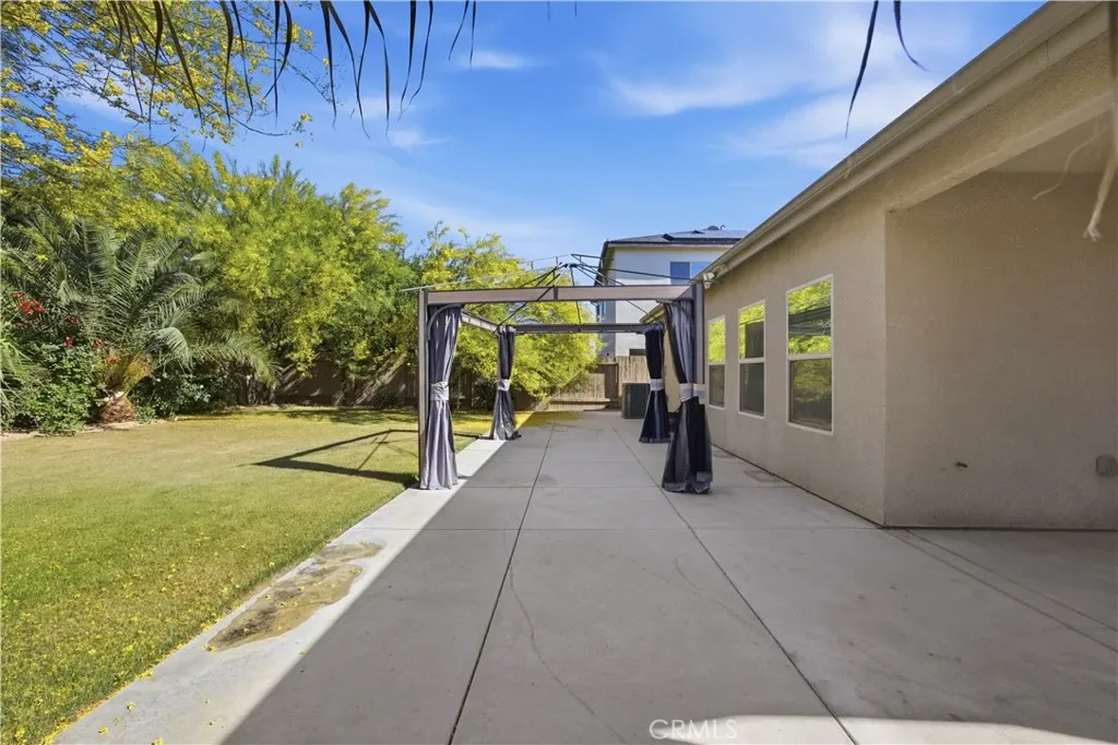 Better than brand new and move-in ready! Built by Lennar and featuring the popular Dutchess floorplan, this 3-bedroom, 1.75-bath home offers 1,746 sq ft of thoughtfully designed living space on a 6,969 sq ft lot, tucked away on a quiet cul-de-sac. Seller is offering a $14,000 credit towards buyer’s closing costs and/or rate buy down, plus a paid-off solar system adding incredible value and long-term savings. A cement walkway leads to the front door, complemented by attractive brick accents that enhance curb appeal. Step inside to a spacious open-concept layout featuring tile flooring, new interior paint, and brand-new carpet throughout. The generous living and dining areas flow seamlessly into the kitchen, creating an ideal space for both everyday living and entertaining. The kitchen stands out with granite countertops, an oversized island with seating and storage, stainless steel appliances, and a walk-in pantry. The primary suite offers a comfortable private retreat with dual sinks, a private toilet room, a deep tile shower, and a walk-in closet, while guest bedrooms are thoughtfully separated for added privacy. Additional interior features include an indoor laundry room with built-in cabinetry and an electric water heater. Outside, enjoy a landscaped backyard with a patio slab, plus extended concrete that spans the full width of the home, providing exceptional additional usable space, along with a cemented side yard for extra functionality and a garage with a convenient service door offering direct backyard access. This home delivers comfort, functionality, and thoughtful upgrades throughout—truly a turnkey opportunity in a desirable cul-de-sac location.
