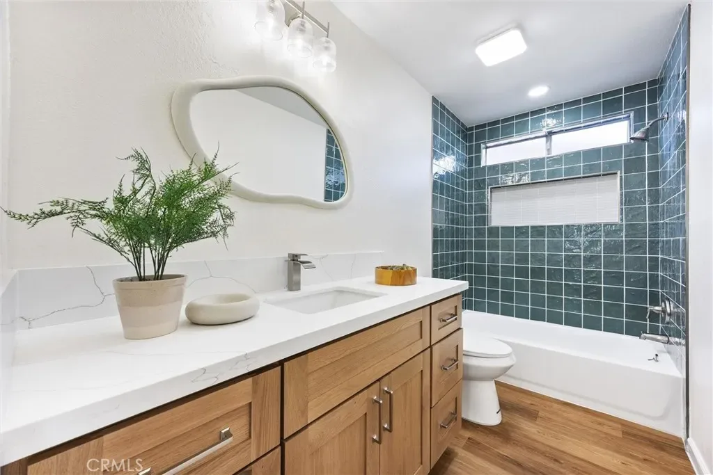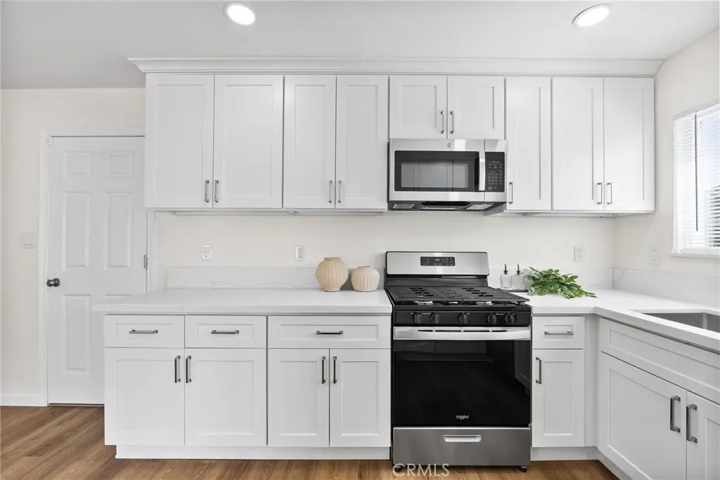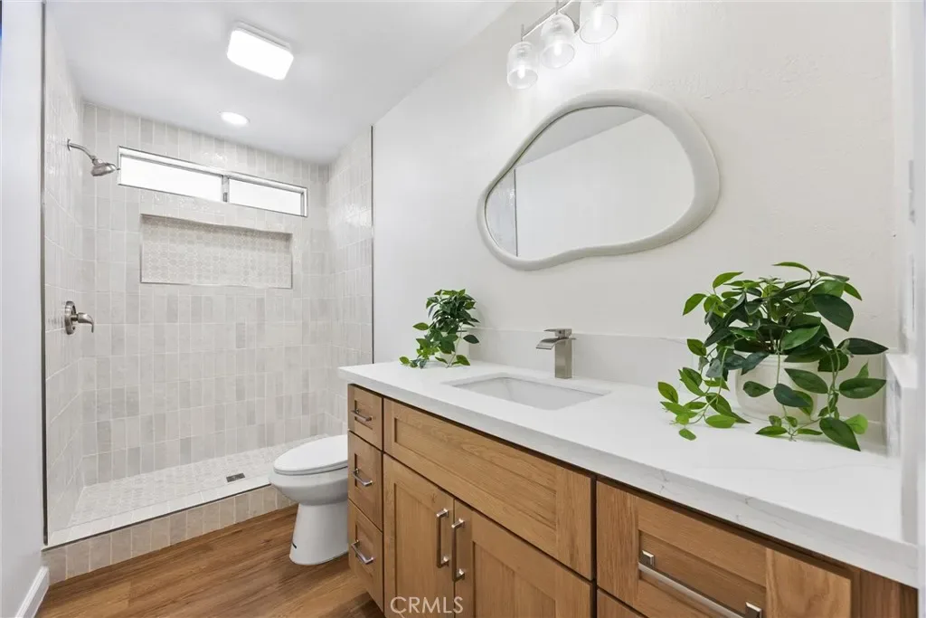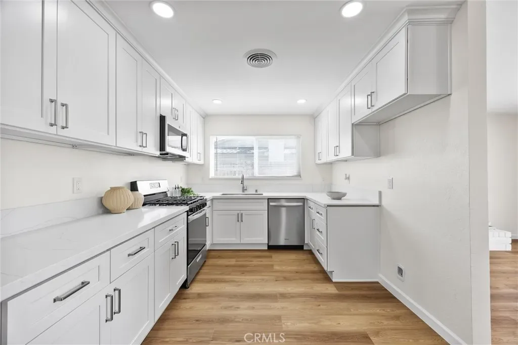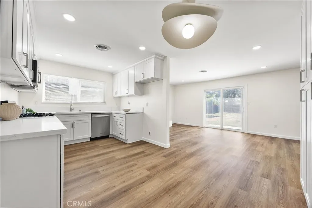 Welcome to this stunning 3 bedroom, 2 bathroom charmer in Northwest Bakersfield. Beautifully updated and move in ready, this home sits on over a quarter acre with alley access, RV parking, and RS zoning for animals. Upon entry, a wood accented slat wall creates an inviting and stylish first impression. Inside, enjoy wood like flooring throughout, a remodeled kitchen with stainless steel appliances, quartz countertops, stunning pull handles, and a newly added pantry offering abundant storage. Both bathrooms feature sparkling tiled showers with soap niches, new vanities, mirrors, and updated lighting. Stunning light fixtures throughout enhance the bright, modern feel. The inviting living area is anchored by a cozy fireplace with a wood mantle, perfect for relaxing evenings. This property offers space, style, and versatility all in one. Do not miss your opportunity to call this exceptional home yours.