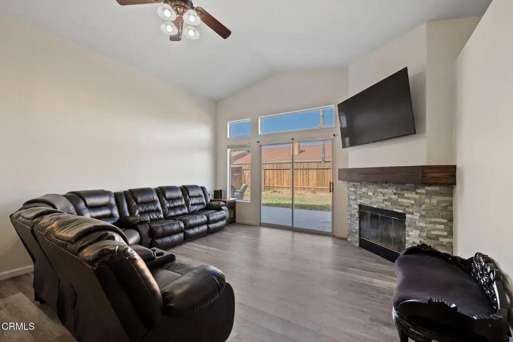 Excellent Updated Home in Riverlakes with New HVAC and Solar! This beautiful 3 Bedroom, 2 Bathroom home features a family room with a cozy fireplace highlighted by a stone surround and wood mantle, a slider to the backyard along with vaulted ceilings that create a bright and open feel. The kitchen offers a breakfast bar, granite countertops, subway tile backsplash, stainless steel appliances, and attractive wood-look flooring that flows through the main living areas. The primary suite includes dual closets, dual sinks, and a step-in shower. Other features include a new HVAC, affordable solar loan with two batteries, and an indoor utility room.Situated in one of the best locations in Northwest Bakersfield, this home is close to great schools, shopping, and restaurants. The Riverlakes community offers resort-style amenities including fishing, a large beach-entry swimming pool, spa, fenced playground, BBQ areas, and scenic walking paths surrounding the beautiful 17-acre lake.