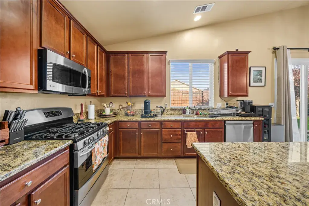 This charming home in desirable southwest Bakersfield offers easy access to shopping, schools, and general services. Inside, the spacious living room flows into a kitchen with a large granite countertops, island, abundant storage, beautiful wood cabinetry, and stainless steel appliances, all complemented by tile flooring. Recent upgrades include luxury vinyl plank flooring in the living room and newer carpet in several bedrooms. The split-wing layout provides privacy, with one bedroom perfect as an office or guest room. The seller recently installed a brand-new air conditioning unit, making the home more energy-efficient. The backyard features a spacious pad ideal for outdoor gatherings and is surrounded by extra cement on all sides, offering low-maintenance convenience. The home is ideal for anyone seeking comfort and style in a great location. Call today to schedule a private showing and see all this home has to offer!
