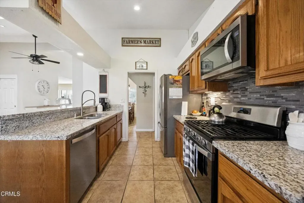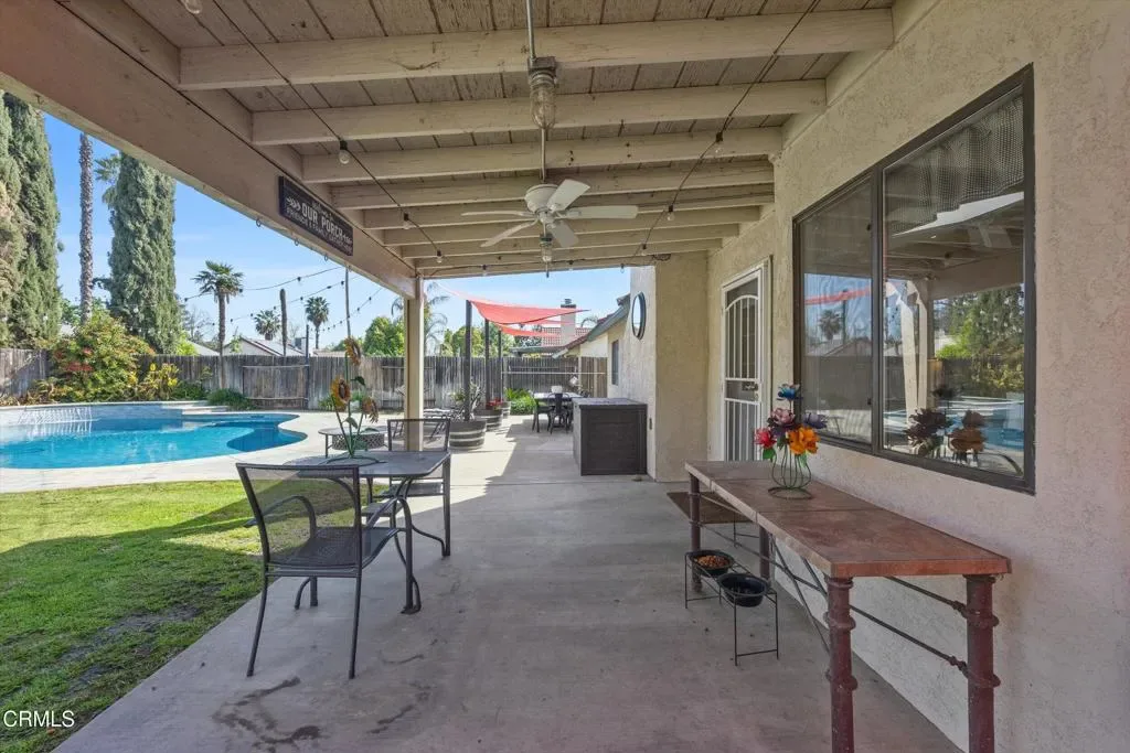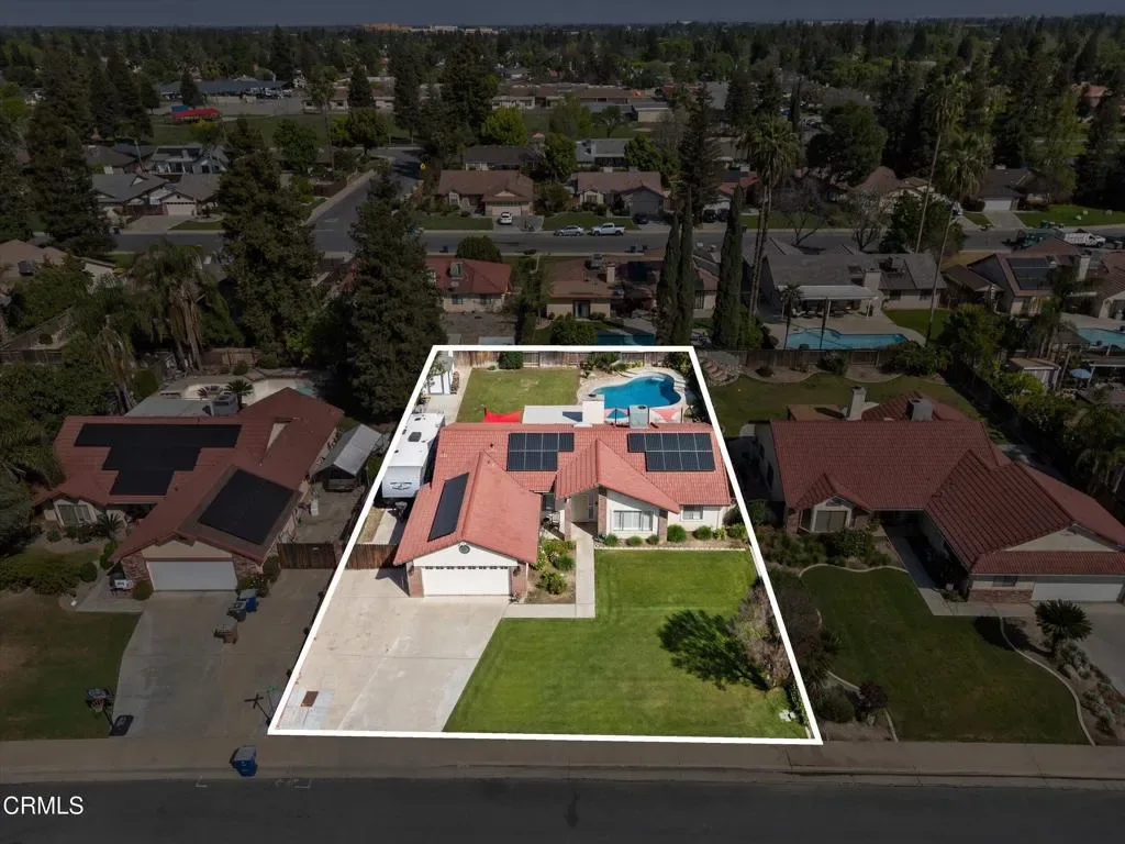 OWNED SOLAR! Located in the highly desirable Oaks neighborhood of Southwest Bakersfield, this beautifully maintained 4-bedroom, 2-bath home offers 1,809 sq ft of living space on an expansive 10,454 sq ft lot. Situated near some of the area’s top-rated schools, this property combines comfort, convenience, and functionality.The home features a well-designed layout with a formal dining room, spacious family room, and an indoor laundry room. Interior upgrades include bathroom remodels, granite countertops, tile flooring throughout the main living areas, and carpeted bedrooms for added comfort. A two-car garage and a no-monitoring-fee security system providing additional practicality and peace of mind.Step outside to enjoy a saltwater pool and a generous backyard that includes two storage sheds (8’x10′ and 6’x10′) with electrical outlet and lights. The property also boasts an exceptional 65′ x 14′ gated RV parking area–one of the largest available–complete with both 30-amp and 50-amp hookups, easily accommodating an RV with a truck attached.Additional highlights include owned solar for energy efficiency and a prime location within walking distance to a local park and a nearby shopping center offering groceries, dining, entertainment, banking, and spa services.This home truly offers the space, features, and location buyers are looking for–don’t miss the opportunity to make it yours.