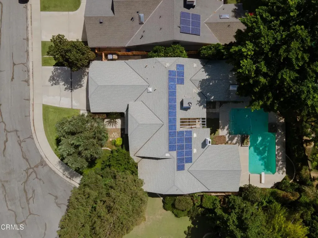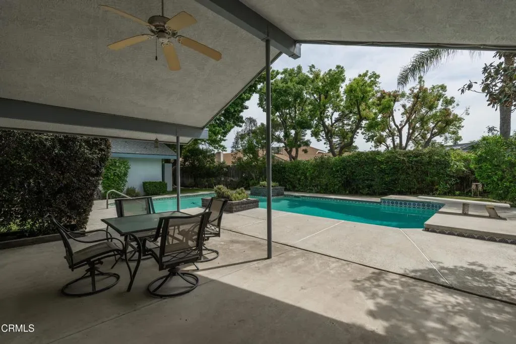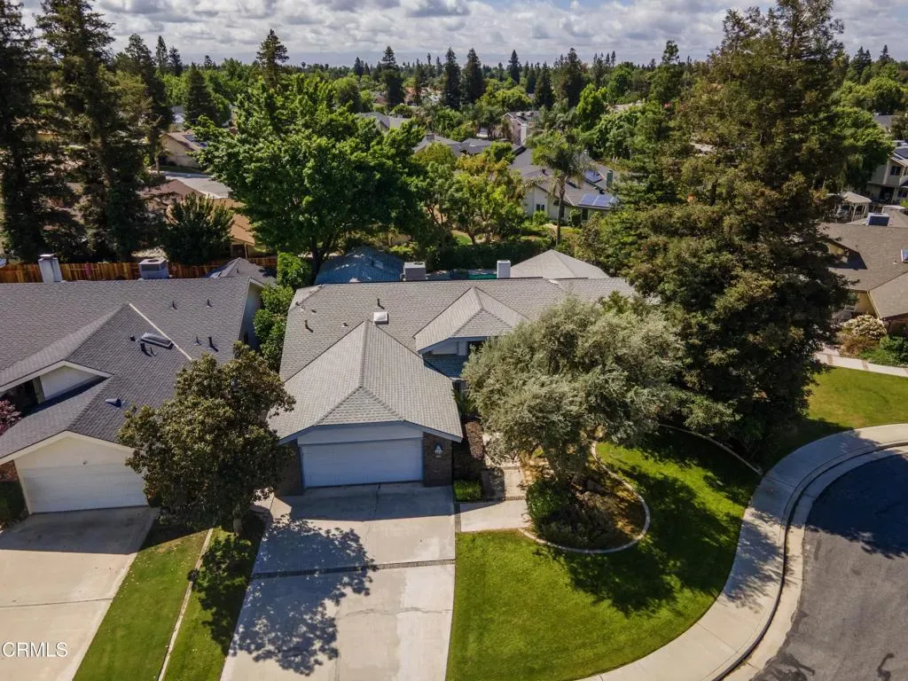 Charming 4-bedroom, 2-bath home on a cul-de-sac in a quiet Oaks neighborhood. Extensively renovated, this home features high-end wood and tile flooring, custom cabinetry, plantation shutters, and owned solar for added efficiency. The open floorplan includes a formal living room with large windows overlooking the front lawn, a welcoming family room with fireplace, and a formal dining room with marble-look tile and floor-to-ceiling windows. The updated kitchen offers custom cabinets, granite counters, decorative tile backsplash, a large island, and an additional dining area. Both bathrooms are upgraded, with the primary suite featuring a soaking tub, oversized frameless glass shower, and dual vanities. The backyard boasts mature landscaping, a sparkling pool, and a spacious covered patio perfect for entertaining. Conveniently located near The Marketplace and in the desirable Stockdale High School district.