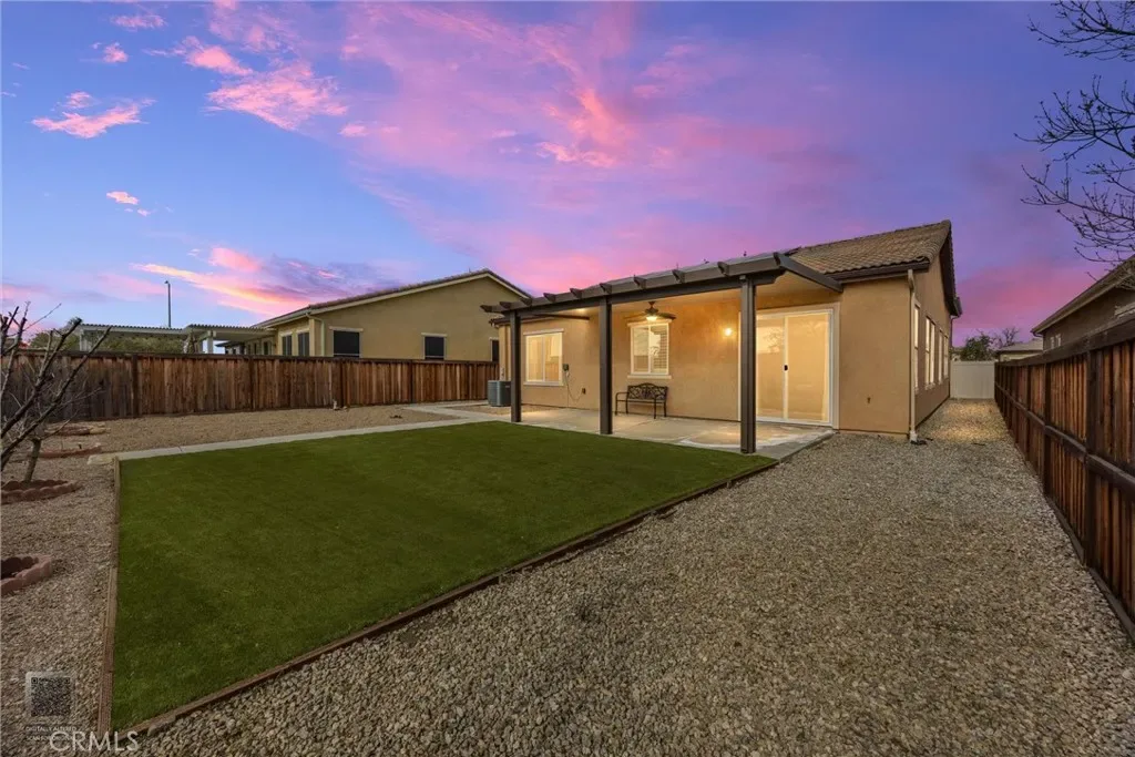 Discover comfort and elegance with resort style living at the Four Seasons 55+ gated community. This beautifully designed 2 bedroom, 2 bath home, plus home office features an open split floor plan, tall ceilings, and a spacious gourmet kitchen with walk in pantry. Refrigerator, washer and dryer are included. The great room makes for an ideal setting for hosting, while the primary suite provides a private retreat with plenty of room to unwind. The primary suite features two separate and spacious walk-in closets. The oversize laundry room is perfect to add extra storage or can double up as a craft room. The possibilities are endless. Wind down your evening in the beautiful low maintenance backyard showcasing artificial turf and a covered patio. Amenities include a pool, fitness center, pickleball, billiard room, theatre, salon, cafe and a variety of social events throughout the month. This neighborhood is highly sought after for its vibrant lifestyle, friendly atmosphere, and beautifully kept surroundings. Experience the perfect blend of comfort, convenience, and community. Your next chapter begins here.