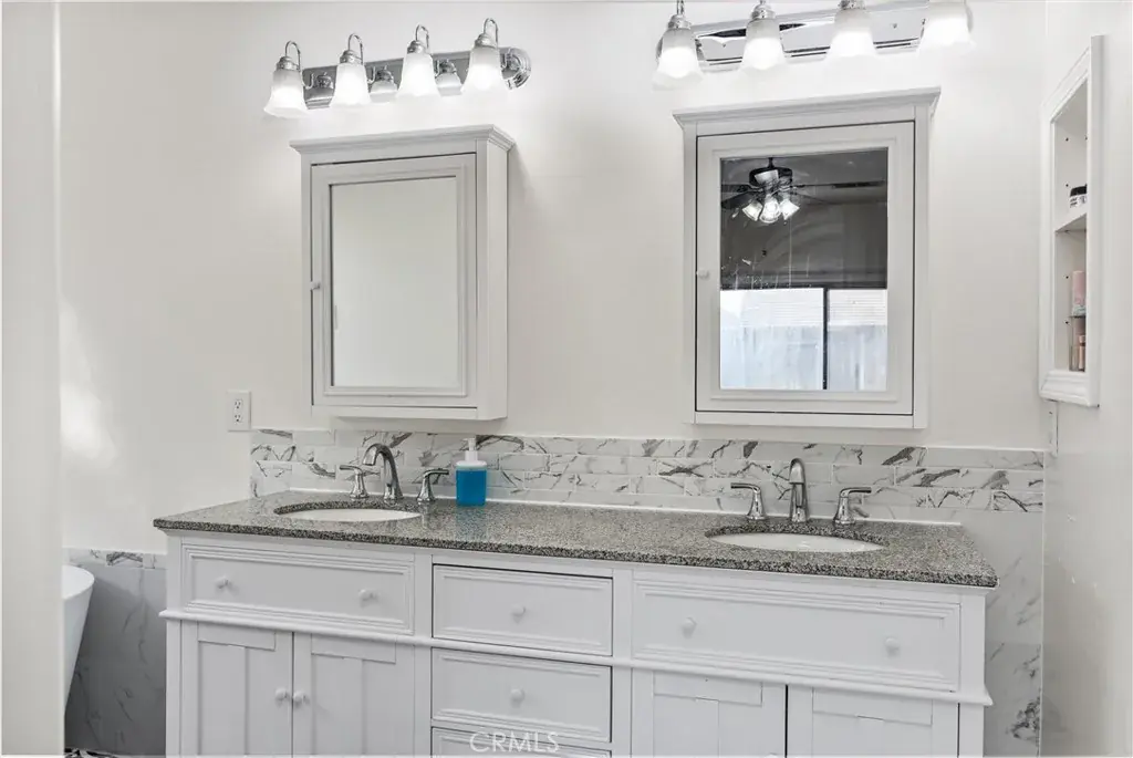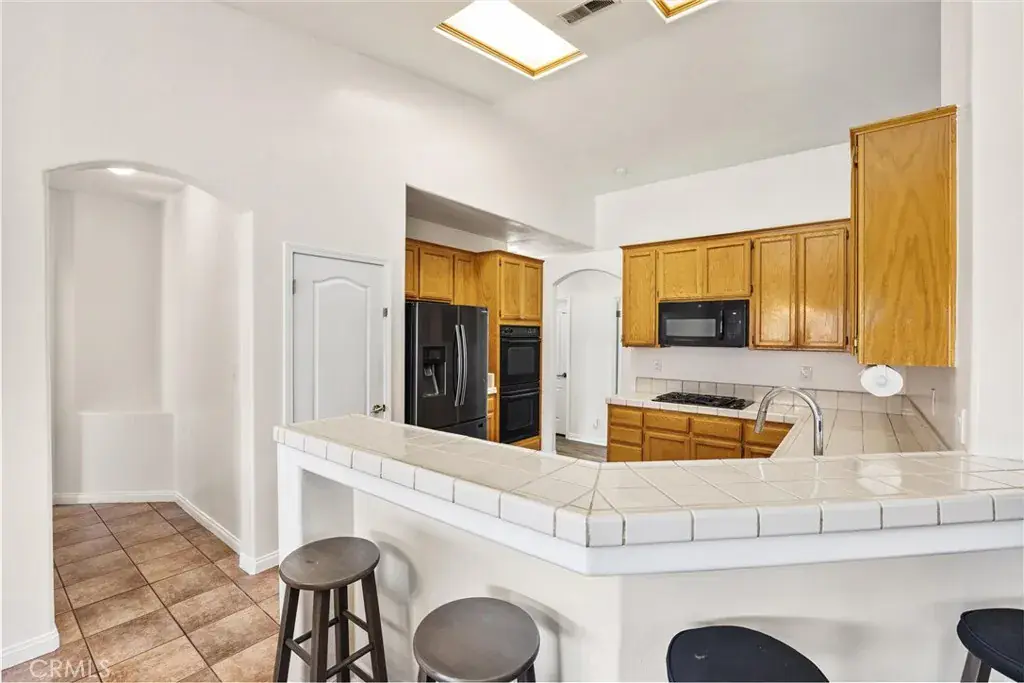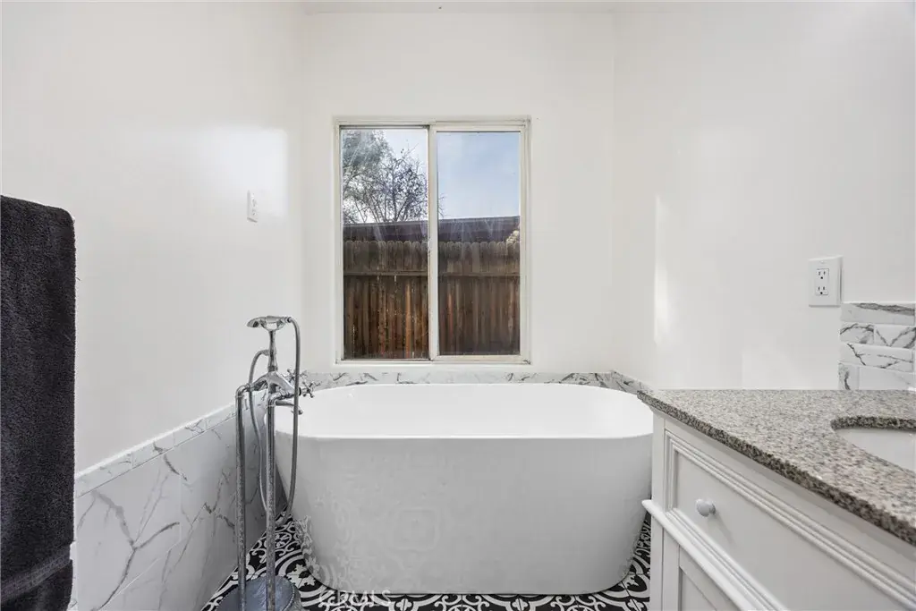 4B/2B home in Northwest Bakersfield conveniently located near shopping, restaurants, and everyday amenities, with easy access to the Westside Parkway for an effortless commute. Featuring fully owned solar, this property offers long-term energy savings — a major advantage in today’s market. Freshly painted and upgraded with LVP flooring throughout, the home showcases a clean, modern aesthetic with durability and easy maintenance. Step inside to an open-concept layout with vaulted ceilings, abundant natural light, and seamless flow between the living, dining, and kitchen spaces. The kitchen is designed for connection and functionality, highlighted by a large countertop bar that provides generous prep space and casual seating while overlooking the main living area. Escape to the spacious primary suite, thoughtfully designed with dual sinks, granite countertops, a freestanding soaking tub, separate shower and a striking patterned tile floor that delivers a true spa-inspired feel.