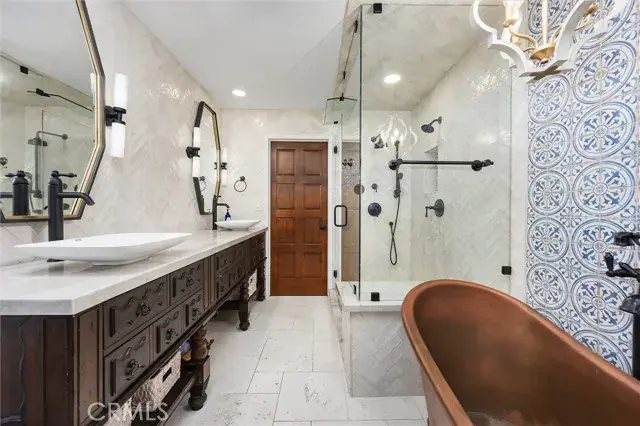 Welcome Home…. to this unique and one of kind villa tucked in Country Club Estates just a short walk to Bakersfield Country Club. The property is a true oasis and features everything your family needs to have your own private resort. The interior boasts high ceilings and open concept complete with fire place and wall to wall tile and large windows . The kitchen is a chefs dream, complete with 3 large wine refrigerator, commercial stove and extra large refrigerator with lots of counter space. The living quarters are spacious with plenty of room for the whole family which include 4 bedrooms and a flex room that gives your family the option for a 4th bedroom. Let’s also include4 well designed bathrooms that round out the living quarters.
