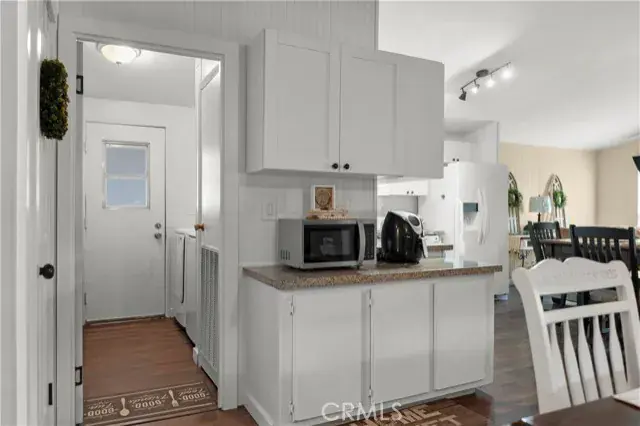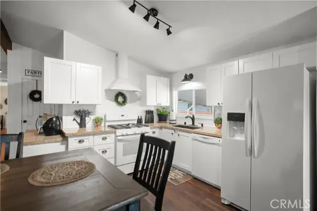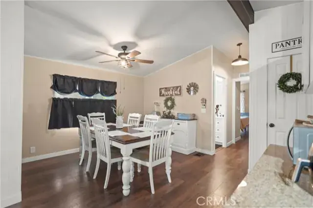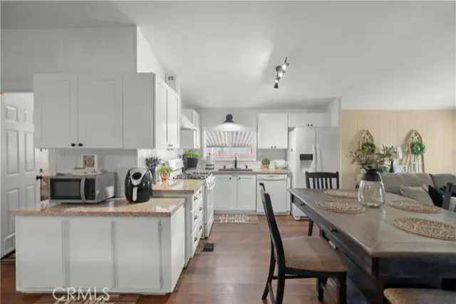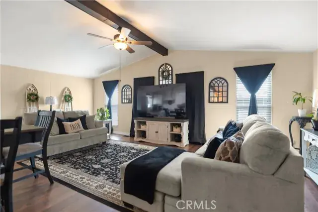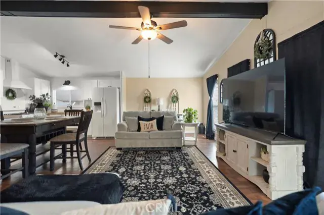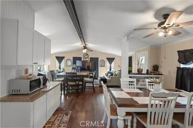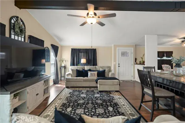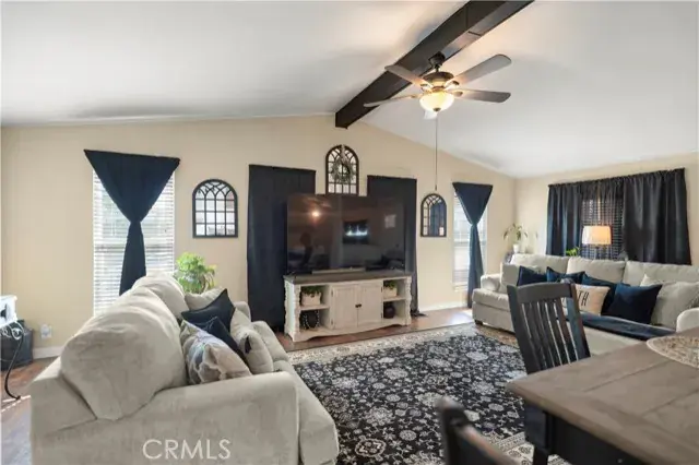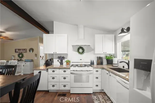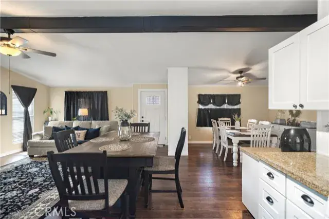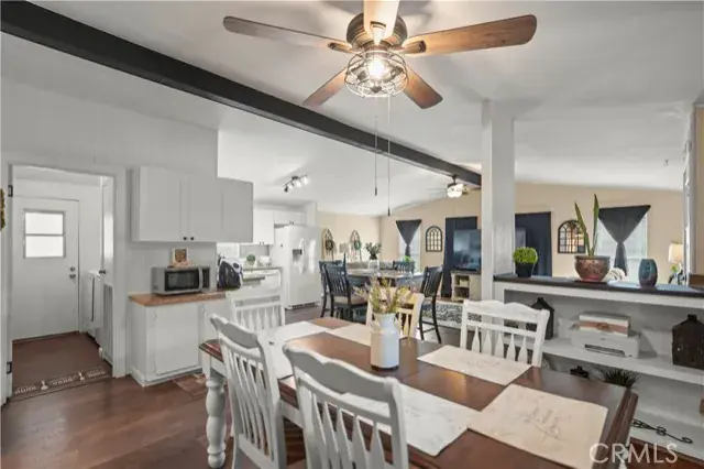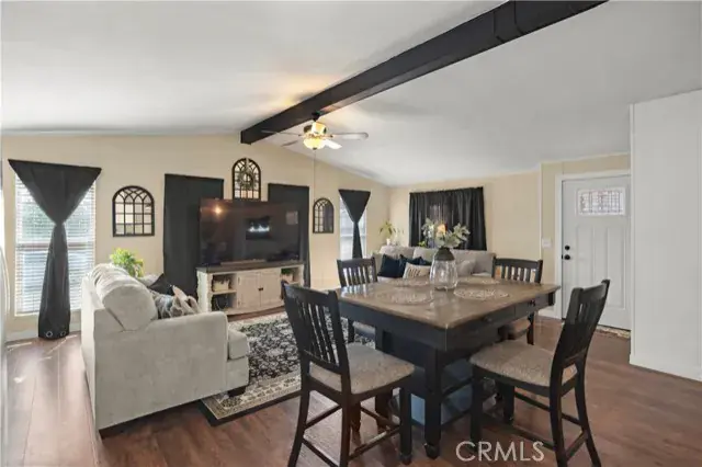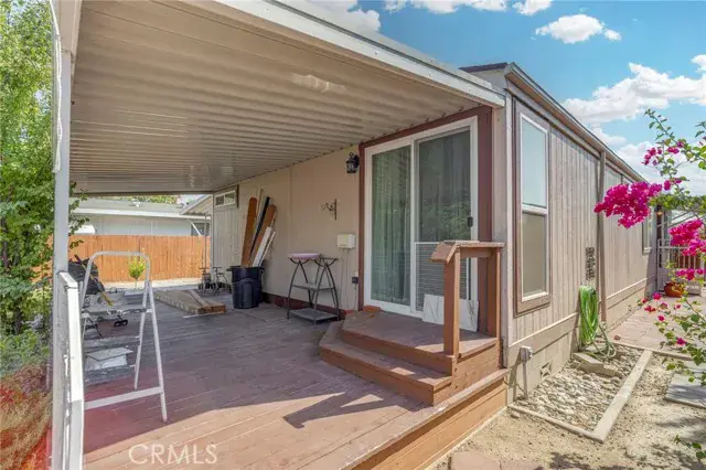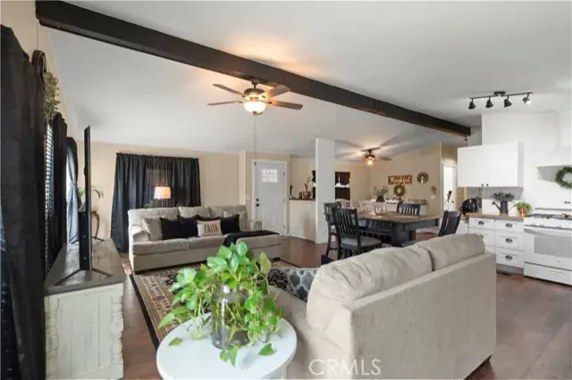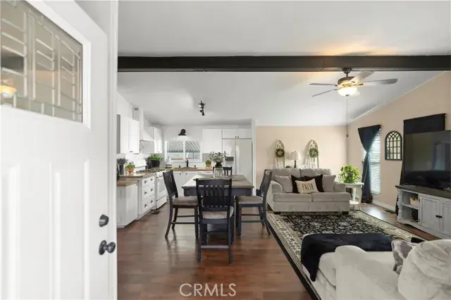 Charming 2-bedroom, 2-bath manufactured home on its own land, completely remodeled and move-in ready. This inviting property combines modern updates with a comfortable, open layout and thoughtful touches throughout. From the moment you step inside, you’ll notice the expansive feel created by high ceilings and abundant natural light pouring through new windows. Hardwood flooring flows seamlessly from the kitchen to the living and dining areas, enhancing the open-concept layout. Key features: Fully remodeled kitchen: white cabinetry, brand-new countertops, modern finishes, Open kitchen–living–dining space perfect for entertaining, Two spacious bedrooms with stylish barn doors on the closets, Two newly remodeled bathrooms: new cabinets, mirrors, toilets, hardwood flooring, and tile showers with updated fixtures, Indoor utility room for convenience, Newer HVAC (AC) system and brand-new roof for peace of mind, Fresh light fixtures and ceiling fans throughout, Manicured front and backyard with a beautiful deck for outdoor living, Large carport/driveway suitable for parking up to three cars. This home blends updated style with practical comfort, offering a low-maintenance, high-appeal living space in a desirable setting.