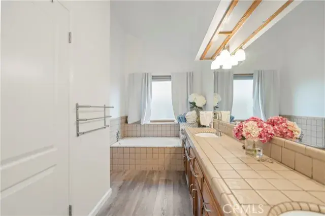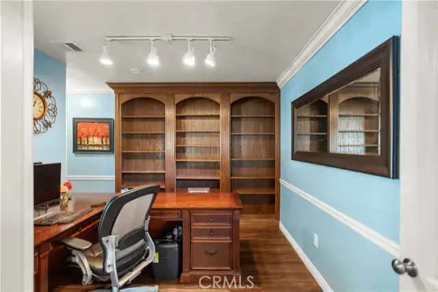 For the modern professional, a dedicated home office awaits, featuring impressive built-in wood bookshelves.The primary suite offers a luxurious escape. Spacious master bedroom including a well-appointed double sink bathroom a relaxing soaking tub, and a separate, beautifully tiled walk-in shower. Practicality is covered with a convenient indoor laundry room that includes ample cabinet storage, and a large walk-in closet.
