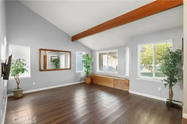 Welcome to this exceptional Laurelglen property that perfectly blends classic comfort with modern efficiency! Outside, showcases great curb apeal with mature landscaping. Enjoy immediate savings thanks to the valuable addition of paid-off solar panels.The home boasts a bright and airy atmosphere, featuring vaulted ceilings and beautiful wood-look flooring throughout the main living areas. The family room is an ideal space for gathering, centered around a charming brick fireplace.